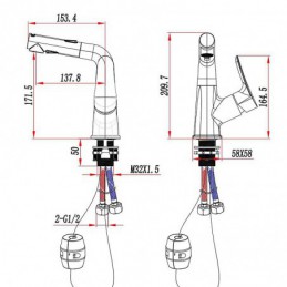 Spout Height (cm): 17, Overall Height (cm): 21, Spout Length (cm): 15.3, Faucet center(Inches): 0-1, Installation Hole Diameter (cm): 3.5,