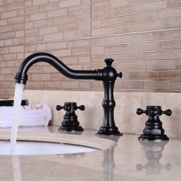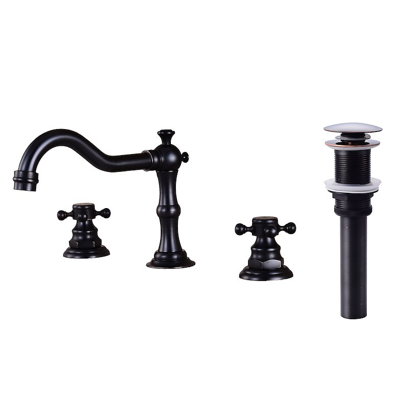 Type: Bathroom Sink Faucet+ Accessories, Style: Contemporary, Features: Widespread, Faucet Type: Faucet Set, Installation Type: Widespread, Cold and Hot Switch: Yes, Valve Type: Brass Valve, Finish: Oil-rubbed Bronze, Installation Holes and Handles: Two Handles Three Holes, Suitable Rooms: Bathroom,