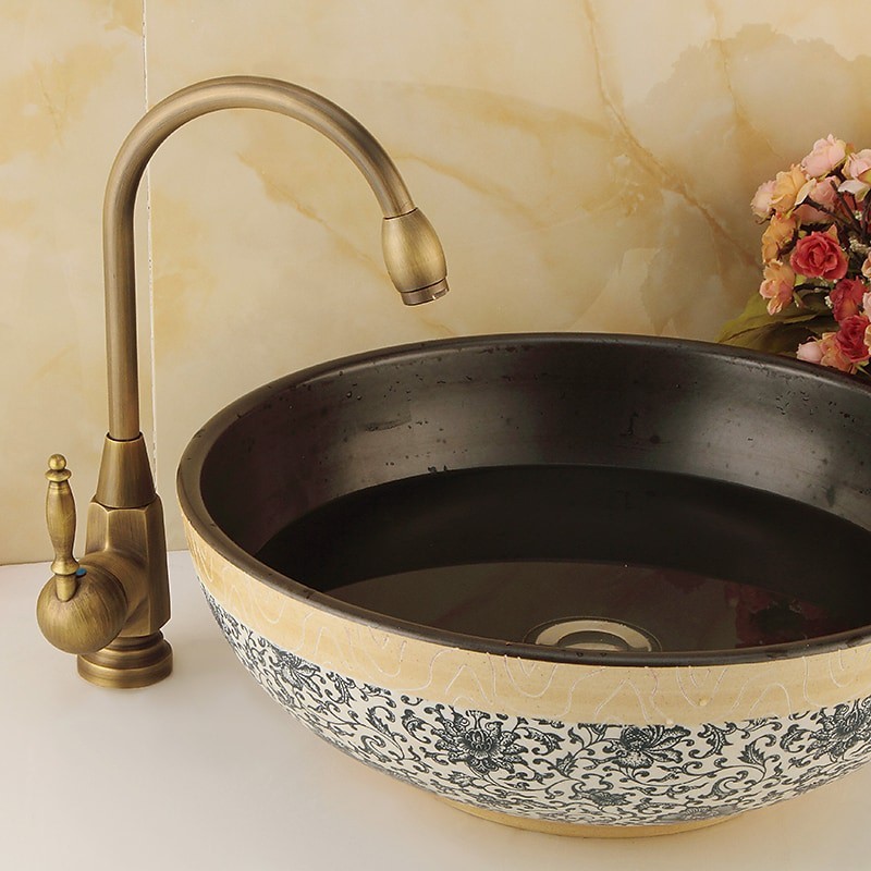 Style: Contemporary, Features: FaucetSet, Widespread, Faucet Type: Bathroom Sink Faucet, Installation Type: Centerset, Cold and Hot Switch: Yes, Valve Type: Ceramic Valve, Finish: Antique Brass, Installation Holes and Handles: Single Handle One Hole,