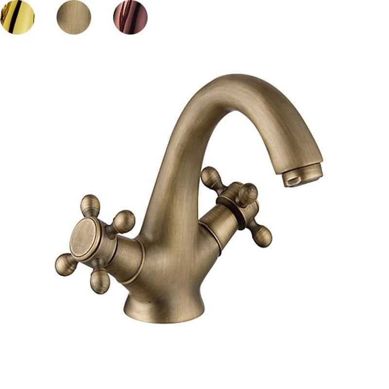 Antique Copper Two Handles Screw Basin Tap Bathroom Sink Tap