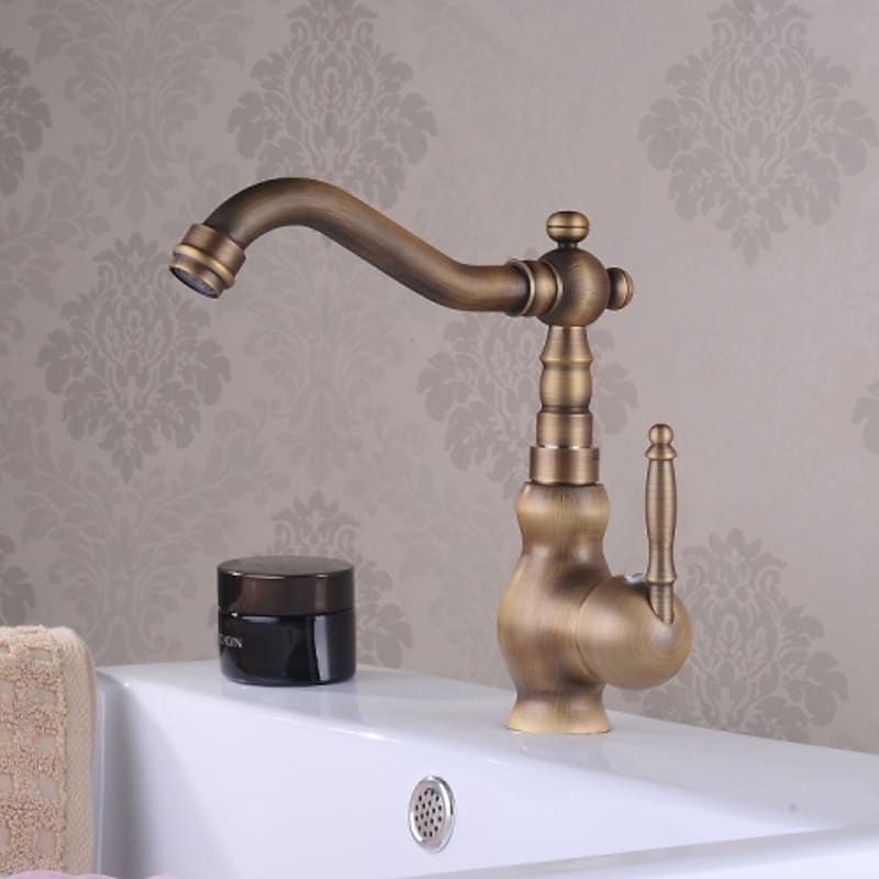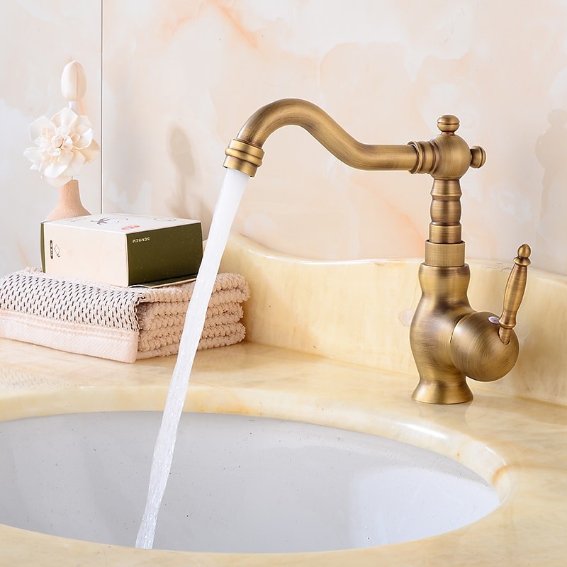 Features: FaucetSet, Faucet Type: Bathroom Sink Faucet, Installation Type: Centerset, Number Of Handles: Single Handle, Cold and Hot Switch: Yes, Valve Type: Ceramic Valve, Finish: Antique Brass, Installation Holes and Handles: Single Handle One Hole,