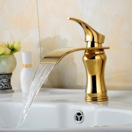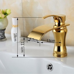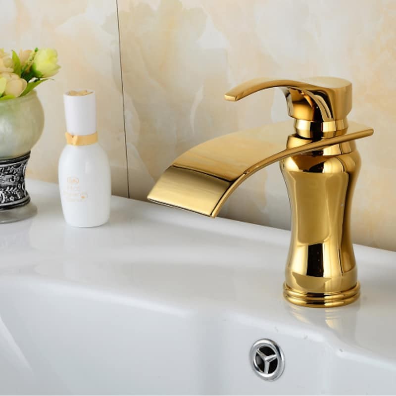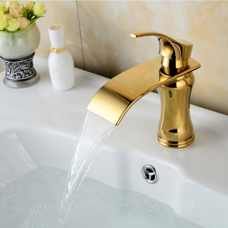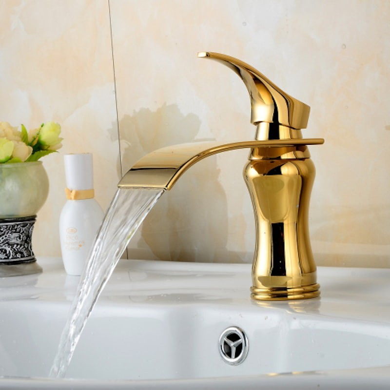 Style: Art Deco / Retro, Contemporary, Modern, Features: Waterfall, Faucet Type: Bathroom Sink Faucet, Installation Type: Centerset, Number Of Handles: Single Handle, Cold and Hot Switch: Yes, Valve Type: Ceramic Valve, Finish: Ti-PVD, Installation Holes and Handles: Single Handle One Hole,