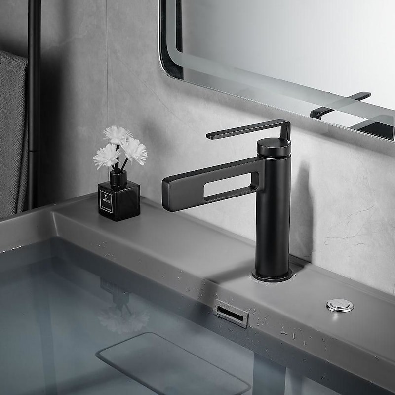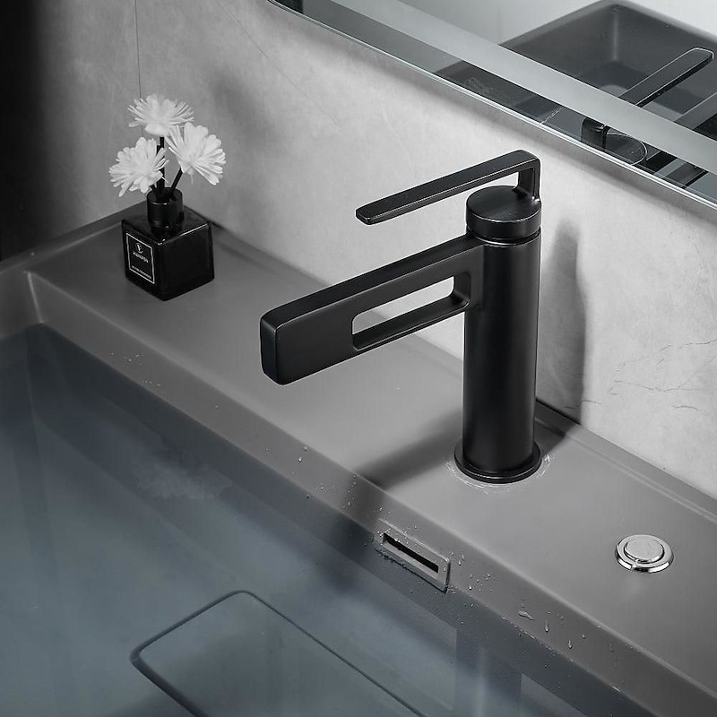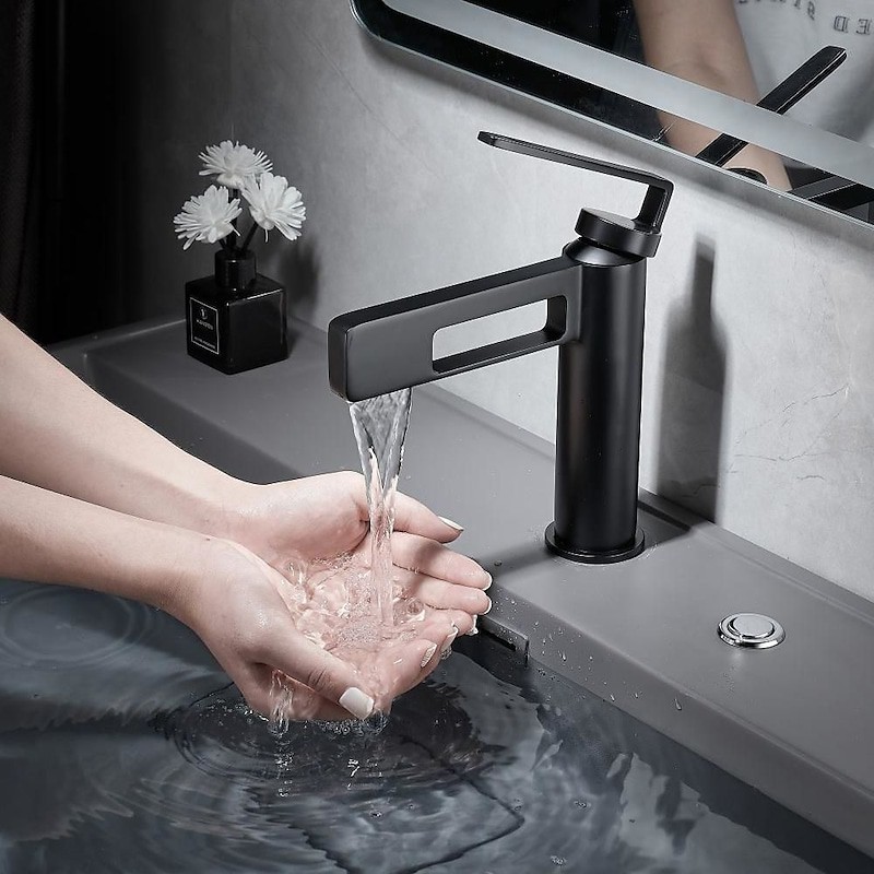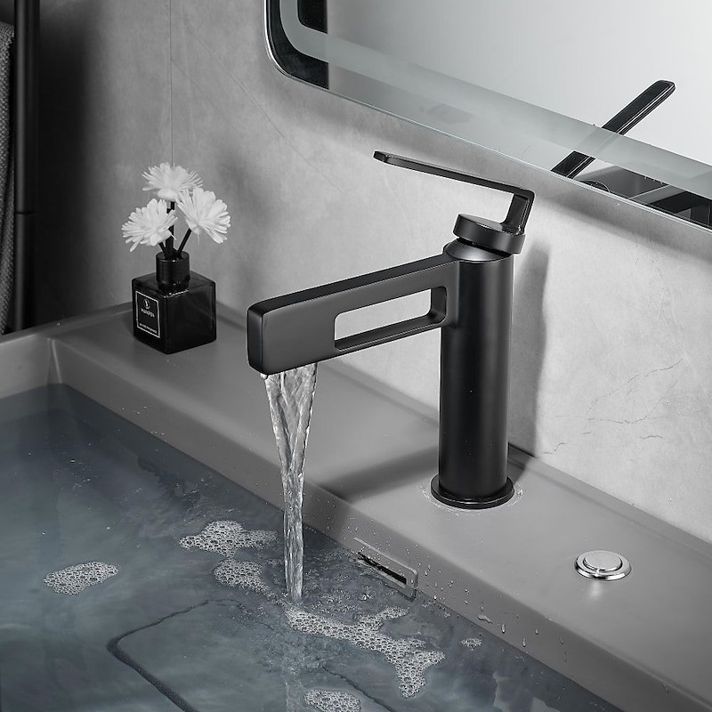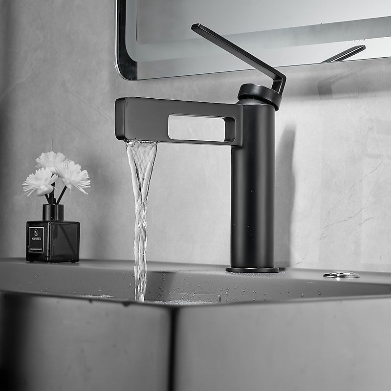 Type: Bathroom Sink Faucet+ Accessories, Style: Modern Contemporary, Minimalist, Features: Waterfall, Faucet Type: Bathroom Sink Faucet, Installation Type: Centerset, Number Of Handles: Single Handle, Cold and Hot Switch: Yes, Valve Type: Ceramic Valve, Finish: Painted Finishes, Electroplated, Installation Holes and Handles: Single Handle One Hole, Water Pressure (Mpa): 0.5-1,