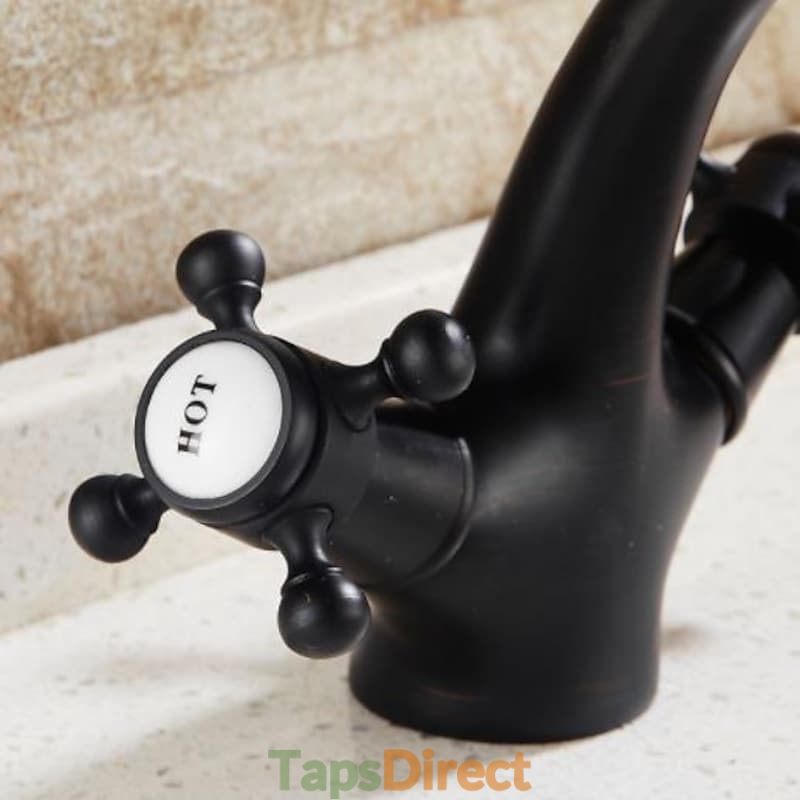 Features: Centerset, Faucet Type: Bathroom Sink Faucet, Installation Type: Centerset, Number Of Handles: Two Handles, Flow Rate (L/min): #(1.5 GPM (5.7 L/min) ), Cold and Hot Switch: Yes, Valve Type: Ceramic Valve, Finish: Oil-rubbed Bronze, Installation Holes and Handles: Two Handles One Hole,