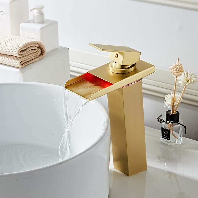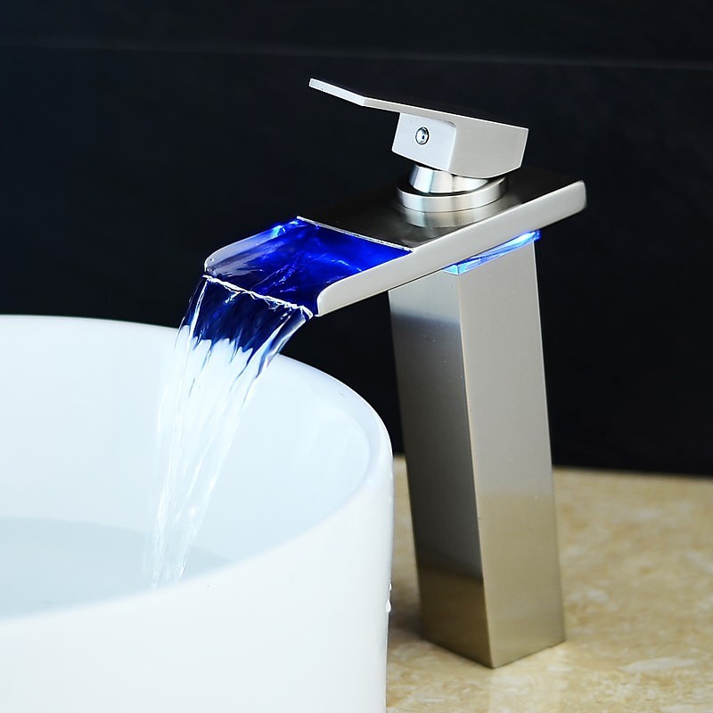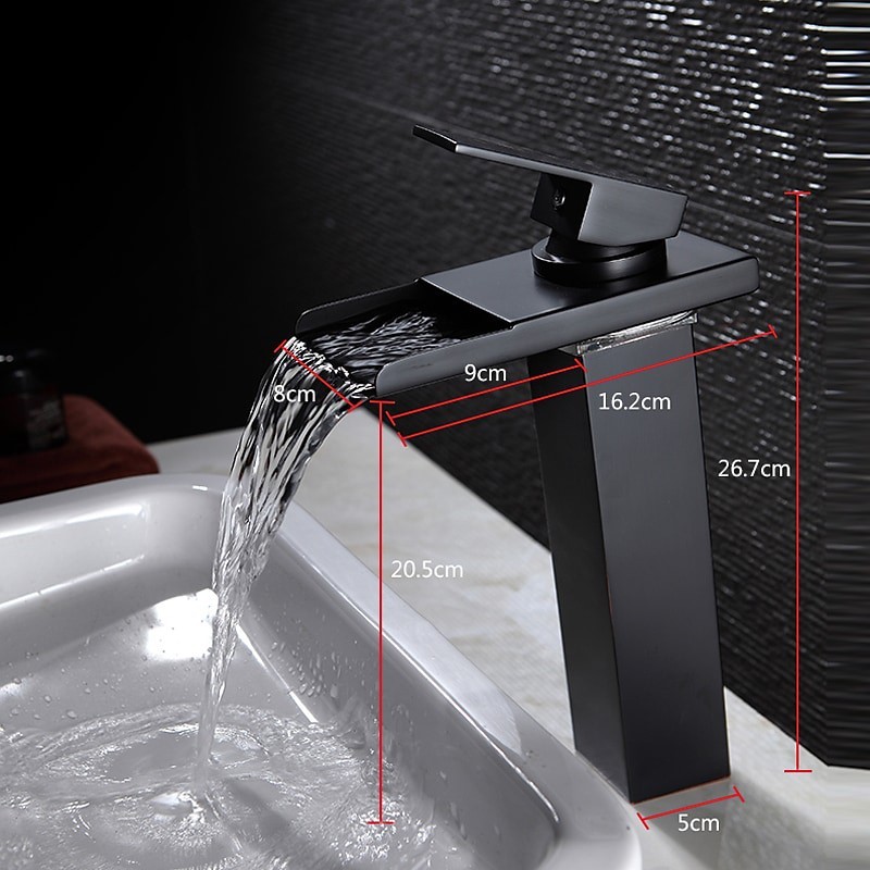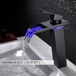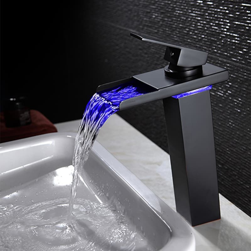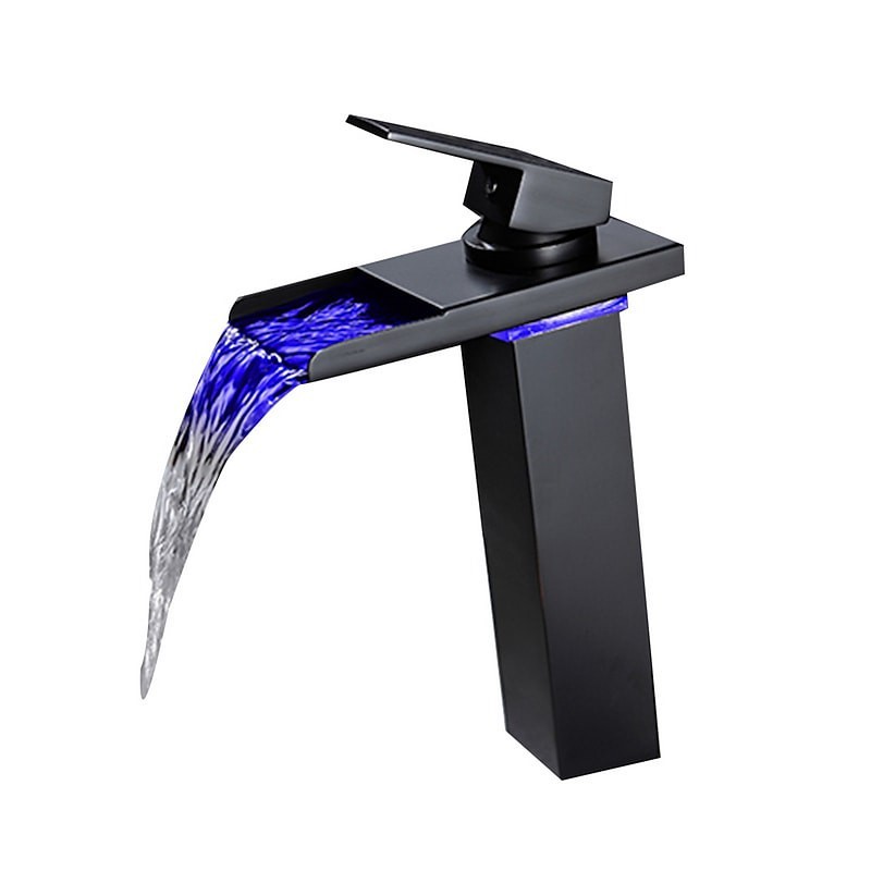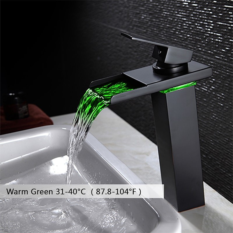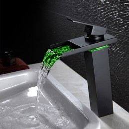 Style: Contemporary, Features: LED, Waterfall, Faucet Type: Bathroom Sink Faucet, Installation Type: Centerset, Number Of Handles: Single Handle, Cold and Hot Switch: Yes, Valve Type: Ceramic Valve, Finish: Oil-rubbed Bronze, Installation Holes and Handles: Single Handle One Hole, Special selected products: COD,