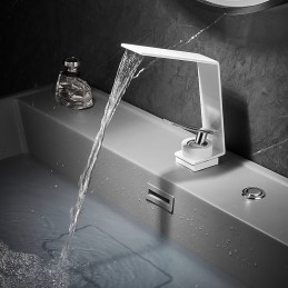 Type: Bathroom Sink Faucet+ Accessories, Style: Modern Contemporary, Features: Waterfall, Faucet Type: Bathroom Sink Faucet, Installation Type: Centerset, Number Of Handles: Single Handle, Cold and Hot Switch: Yes, Valve Type: Ceramic Valve, Finish: Painted Finishes, Electroplated, Installation Holes and Handles: Single Handle One Hole, Water Pressure (Mpa): 0.2-1,