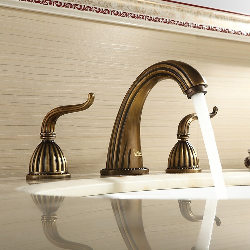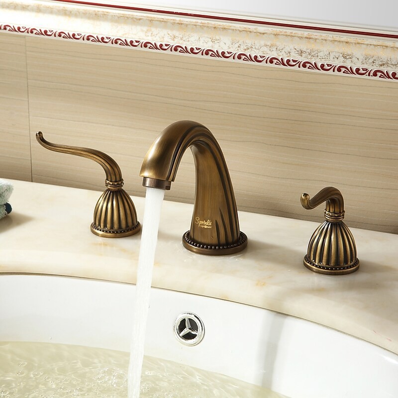 Style: Antique, Features: Widespread, Function: Sink Faucets, Handle Material: Brass, Number Of Handles: Two Handles, Spout Height (cm): 95 mm (3.74"), Valve Type: Ceramic Valve, Spout Length (cm): 155 mm (6.10"), Faucet center(Inches): 6-9, Faucet Body Material: Brass, Faucet Spout Material: Brass, Finish: Antique Brass, Net Weight (kg): 1.94, Shipping Weight (kg): 2.003, Listing Date: 05/06/2013,