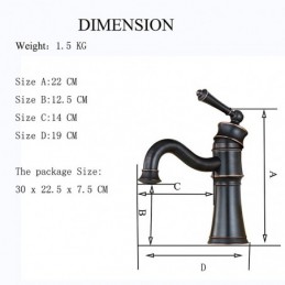 Spout Height (cm): 12.5, Overall Height (cm): 22, Spout Length (cm): 14, Installation Hole Diameter (cm): 3.5,