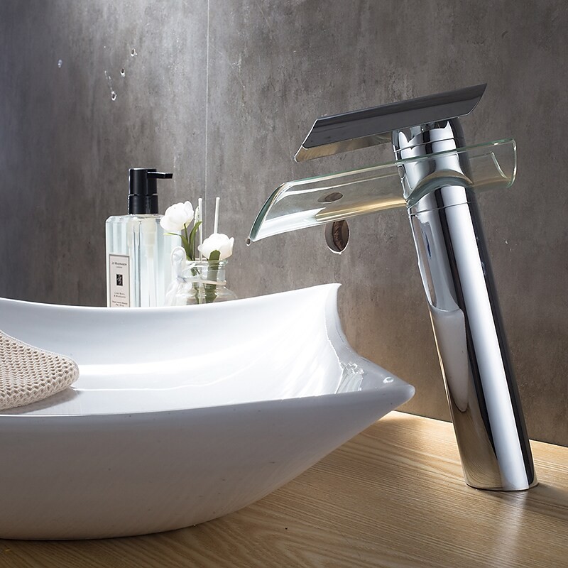 Handle Material: Stainless Steel, Faucet Body Material: Brass, Faucet Spout Material: Glass,