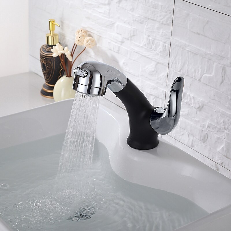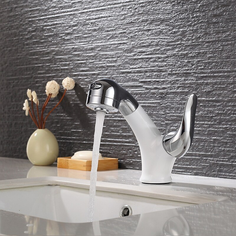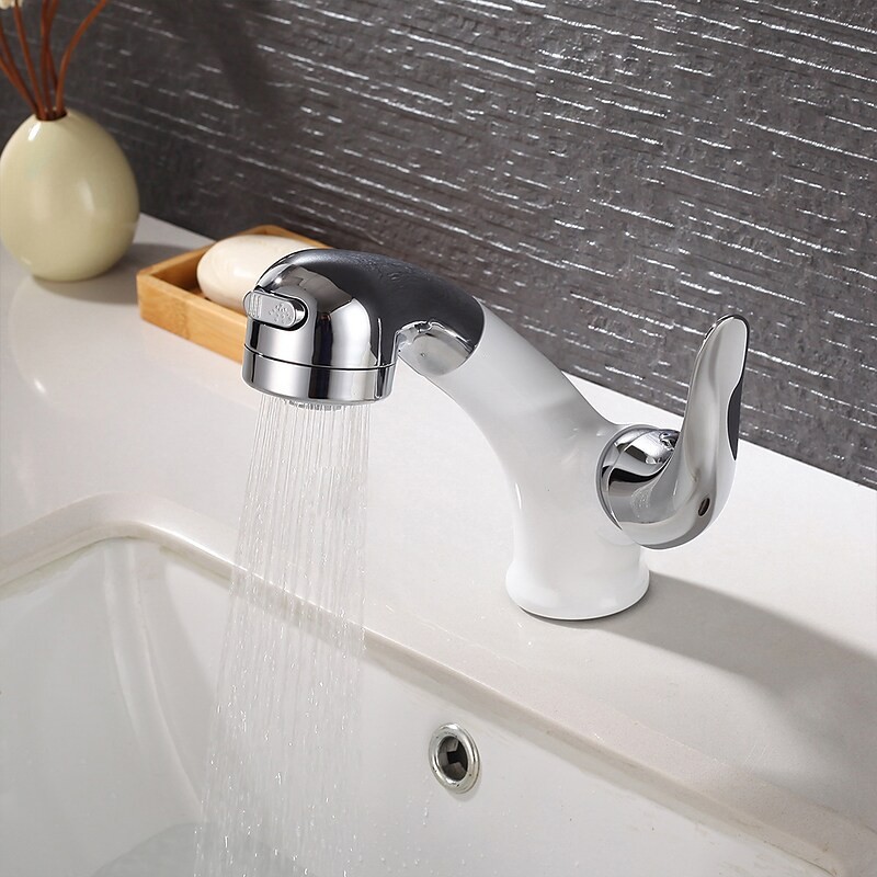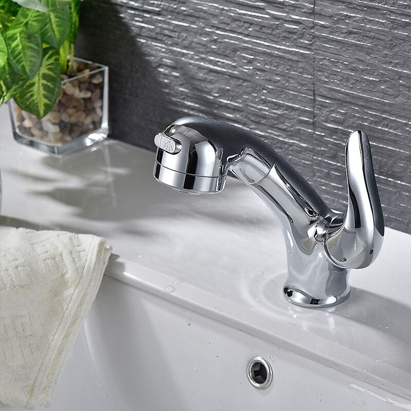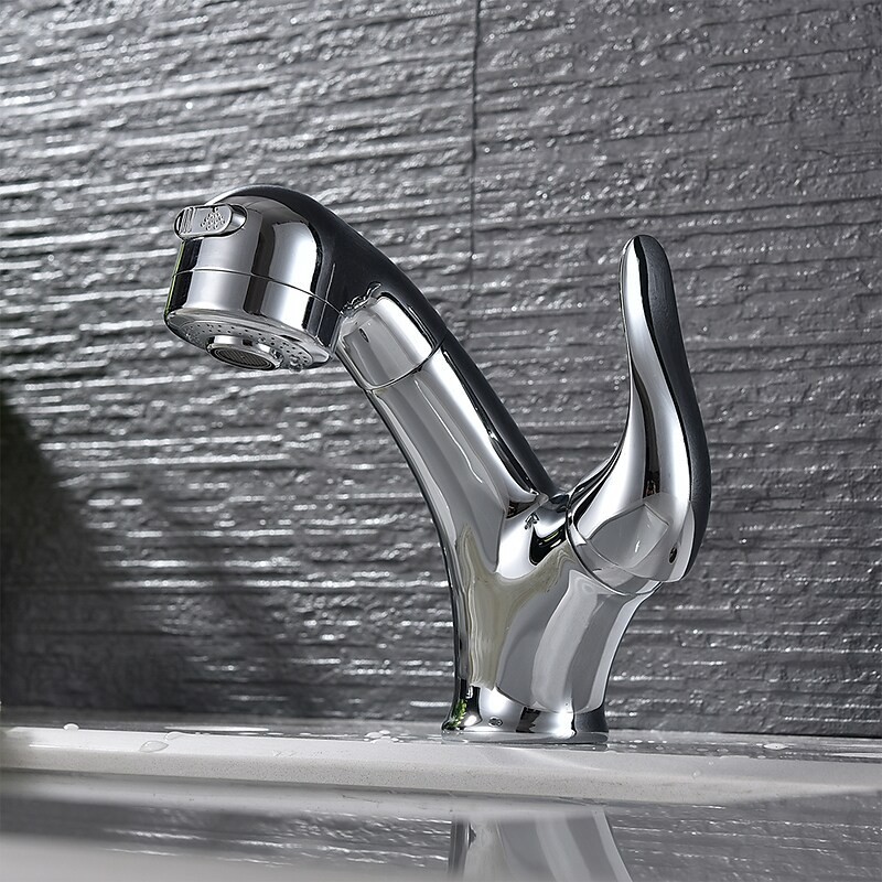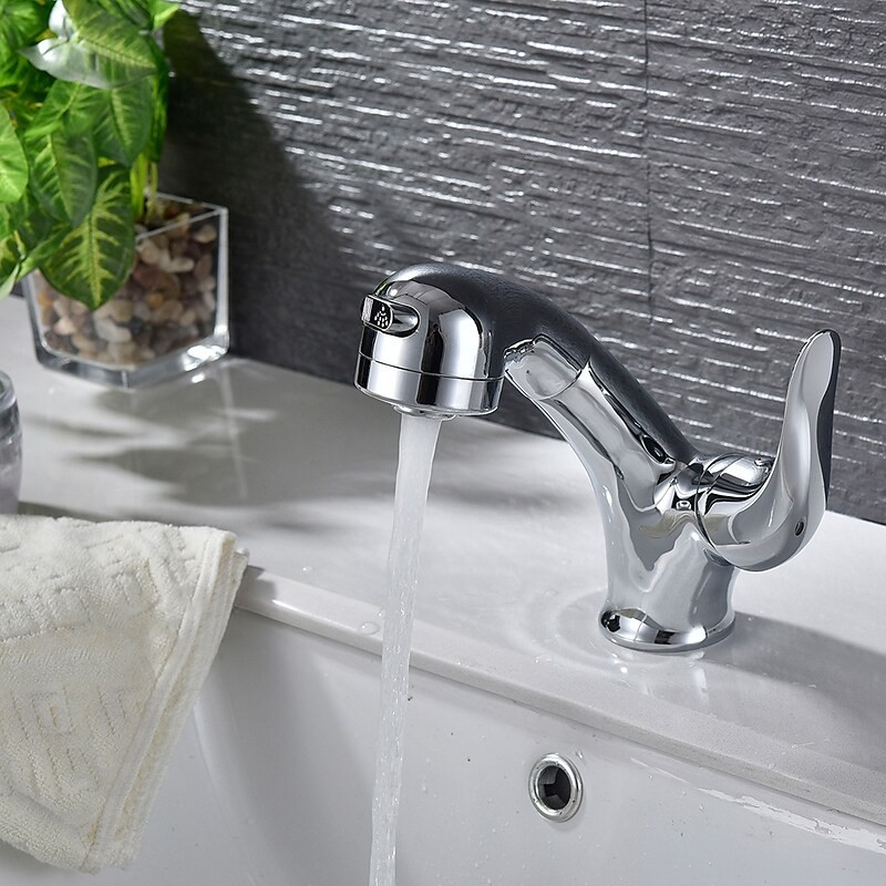 Type: Bathroom Sink Faucet+ Accessories, Style: Modern Contemporary, Features: Rotatable, Pull out, Faucet Type: Bathroom Sink Faucet, Installation Type: Centerset, Number Of Handles: Single Handle, Cold and Hot Switch: Yes, Valve Type: Ceramic Valve, Finish: Chrome, Installation Holes and Handles: Single Handle One Hole,