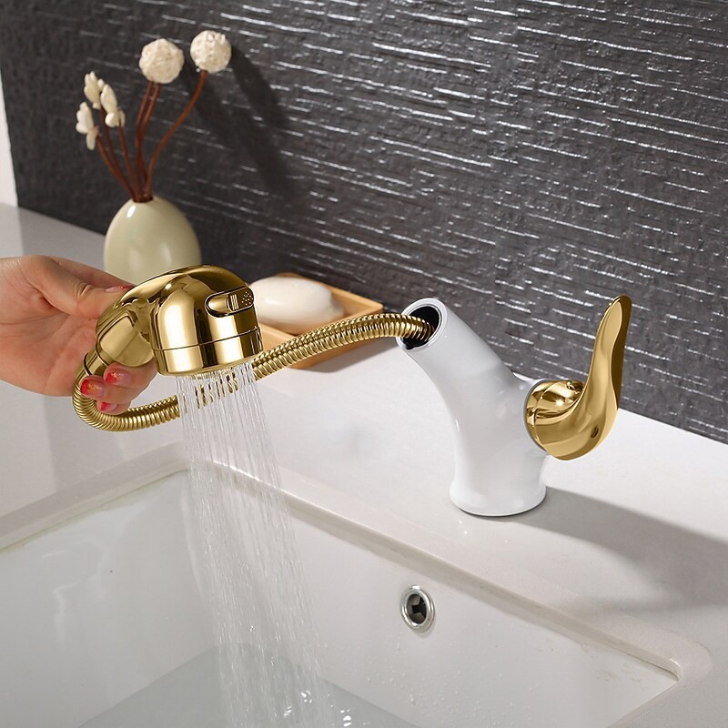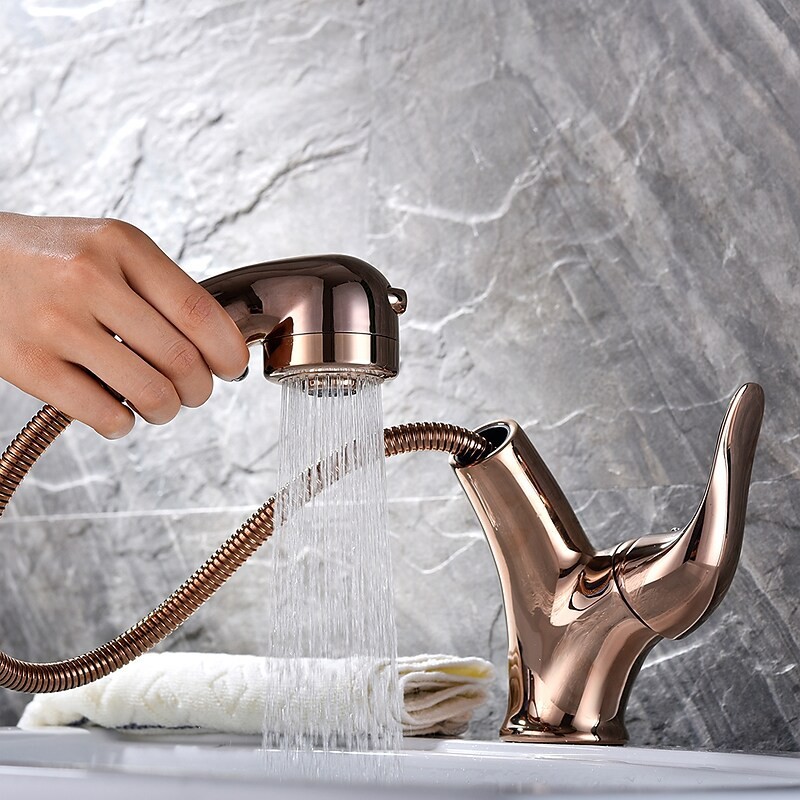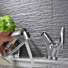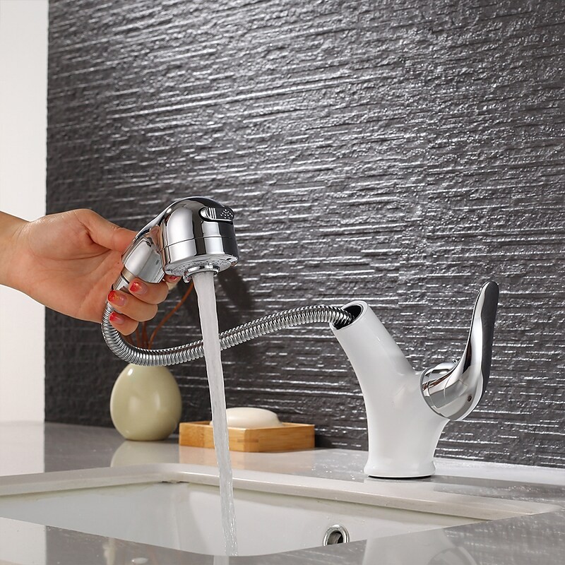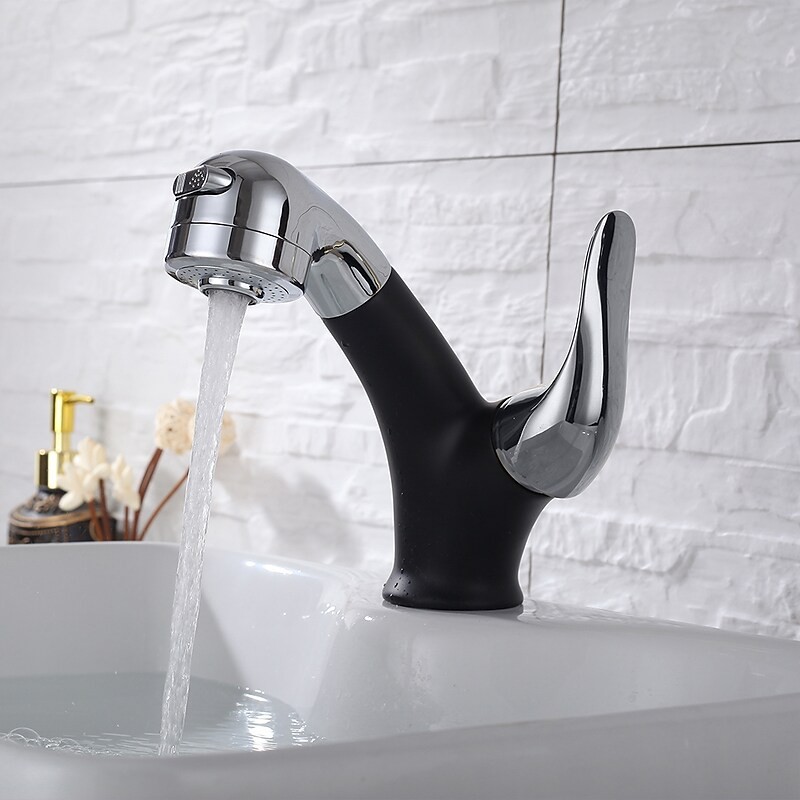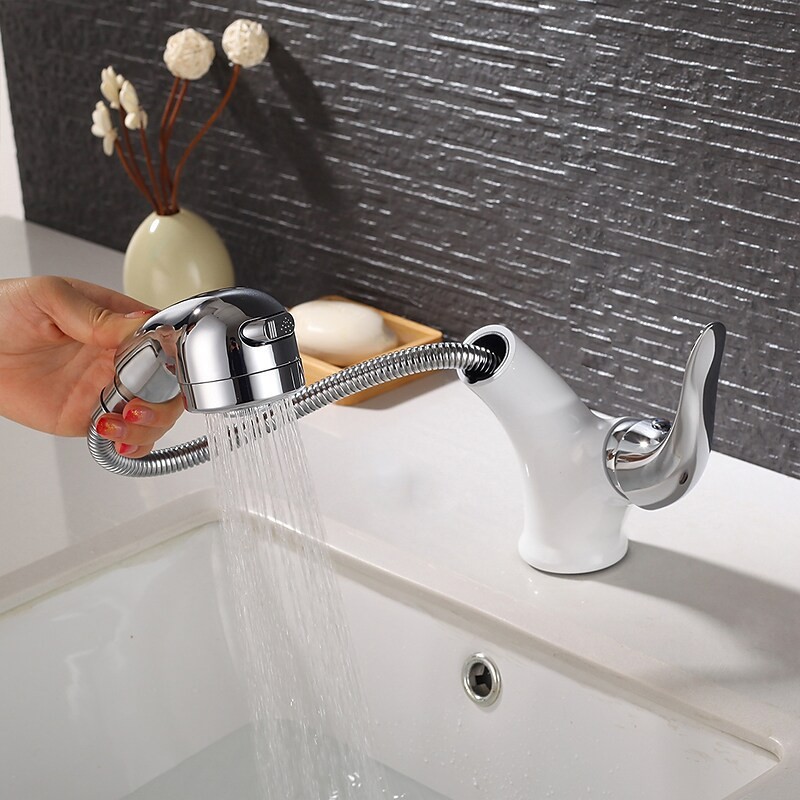 Type: Bathroom Sink Faucet+ Accessories, Style: Modern Contemporary, Features: Rotatable, Pull out, Faucet Type: Bathroom Sink Faucet, Installation Type: Centerset, Number Of Handles: Single Handle, Cold and Hot Switch: Yes, Valve Type: Ceramic Valve, Finish: Chrome, Installation Holes and Handles: Single Handle One Hole,
