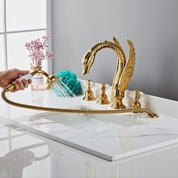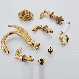 Type: Bathroom Sink Faucets, Style: Modern Contemporary, Features: Widespread, Faucet Type: Bathroom Sink Faucet, Installation Type: Widespread, Number Of Handles: Two Handles, Cold and Hot Switch: Yes, Valve Type: Brass Valve, Finish: Electroplated, Installation Holes and Handles: Two Handles Two Holes,
