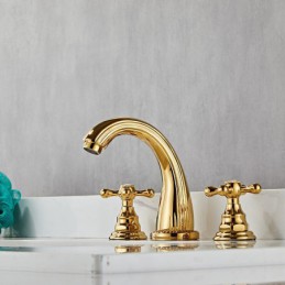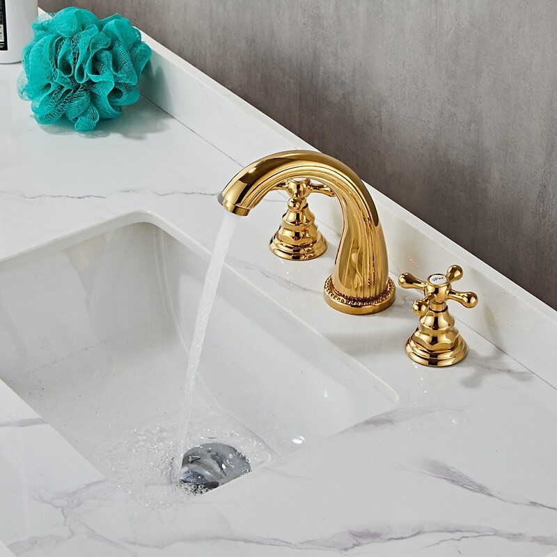 Style: Retro Vintage, Modern Contemporary, Features: Widespread, Faucet Type: Bathroom Sink Faucet, Installation Type: Widespread, Finish: Electroplated, Installation Holes and Handles: Two Handles Three Holes,