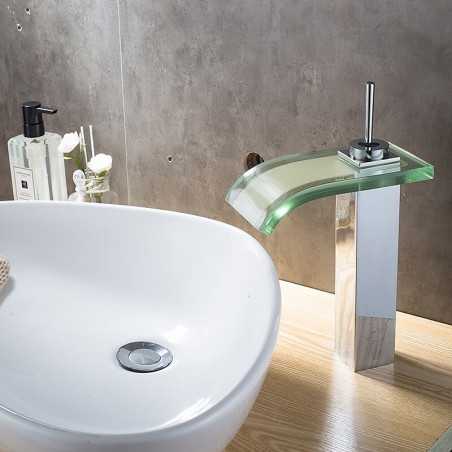 Style: Contemporary, Features: Waterfall, Faucet Type: Bathroom Sink Faucet, Installation Type: Centerset, Number Of Handles: Single Handle, Cold and Hot Switch: Yes, Valve Type: Ceramic Valve, Finish: Electroplated, Installation Holes and Handles: Single Handle One Hole,
