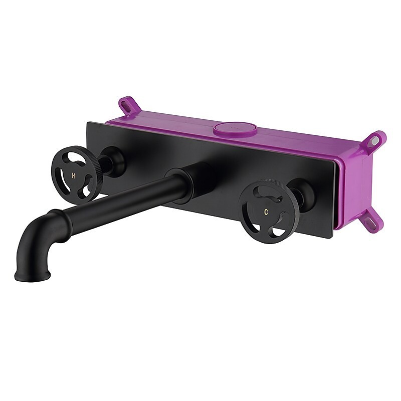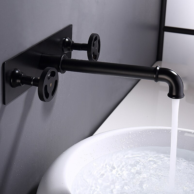 Type: Bathroom Sink Faucet+ Accessories, Style: Contemporary, Features: Classic, Wall Mount, Widespread, Faucet Type: Bathroom Sink Faucet, Installation Type: Mount Inside, Number Of Handles: Two Handles, Cold and Hot Switch: Yes, Valve Type: Ceramic Valve, Finish: Painted Finishes, Installation Holes and Handles: Two Handles One Hole,