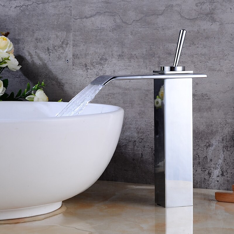 Type: Bathroom Sink Faucets, Style: Modern Contemporary, Features: Waterfall, Faucet Type: Bathroom Sink Faucet, Installation Type: Centerset, Number Of Handles: Single Handle, Valve Type: Ceramic Valve, Finish: Electroplated, Installation Holes and Handles: Single Handle One Hole,