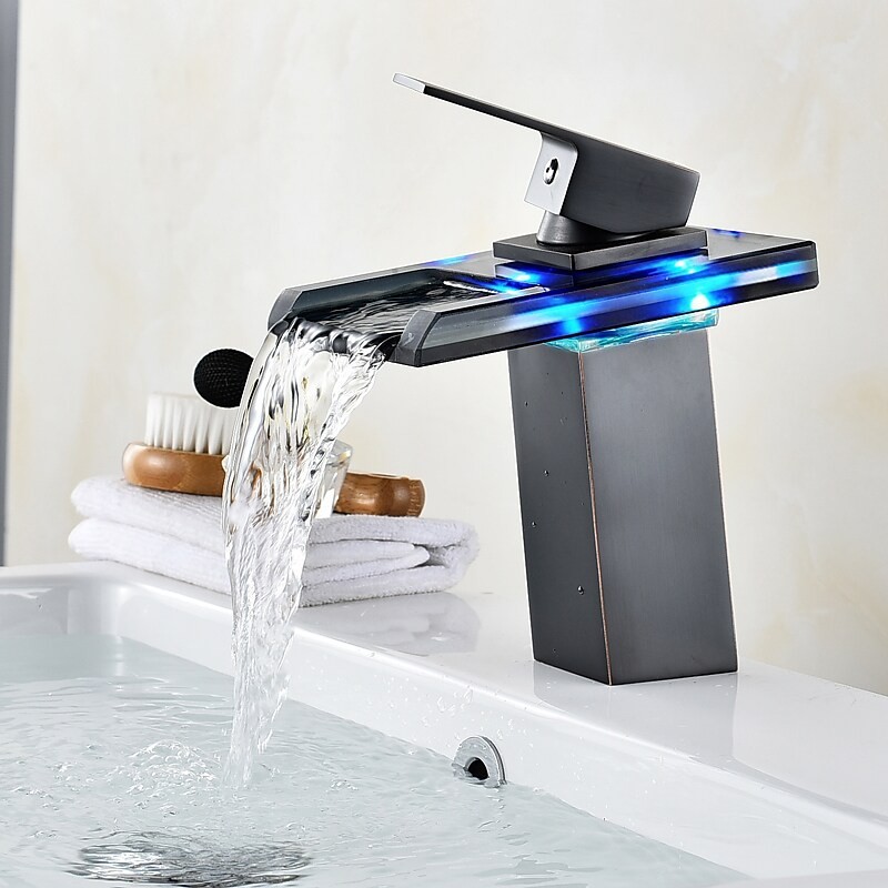 Type: Bathroom Sink Faucets, Style: Modern Contemporary, Features: Waterfall, Faucet Type: Bathroom Sink Faucet, Installation Type: Centerset, Cold and Hot Switch: Yes, Valve Type: Ceramic Valve, Finish: Oil-rubbed Bronze, Electroplated, Nickel Brushed, Installation Holes and Handles: Single Handle One Hole,