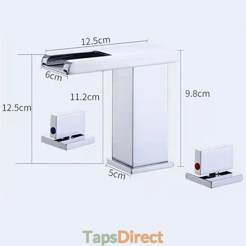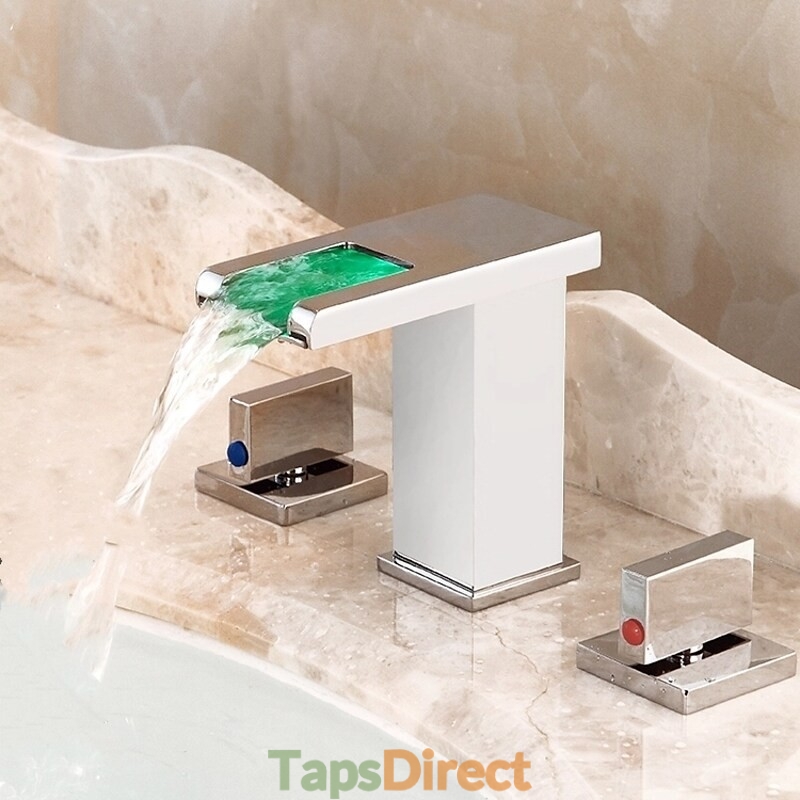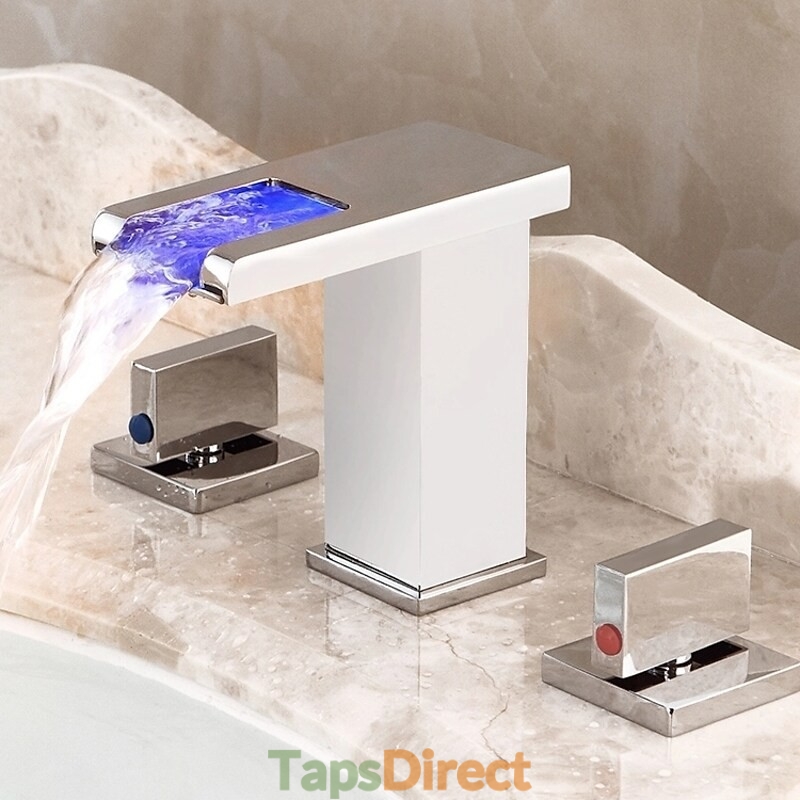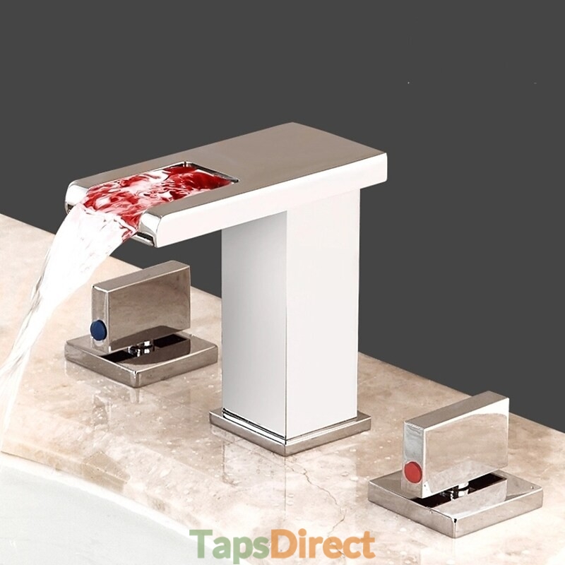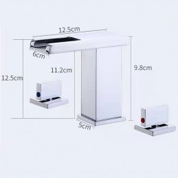 Style: Contemporary, Features: LED, Waterfall, Faucet Type: Bathroom Sink Faucet, Installation Type: Widespread, Number Of Handles: Two Handles, Cold and Hot Switch: Yes, Valve Type: Brass Valve, Finish: Chrome, Installation Holes and Handles: Two Handles Three Holes,
