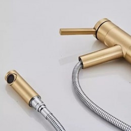 Style: Contemporary, Features: Pullout Spray, Faucet Type: Bathroom Sink Faucet, Installation Type: Centerset, Number Of Handles: Single Handle, Cold and Hot Switch: Yes, Valve Type: Ceramic Valve, Finish: Nickel Brushed, Installation Holes and Handles: Single Handle One Hole,