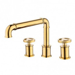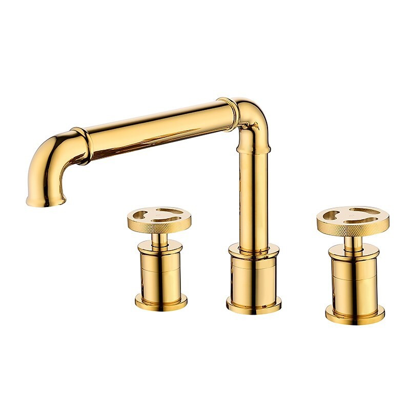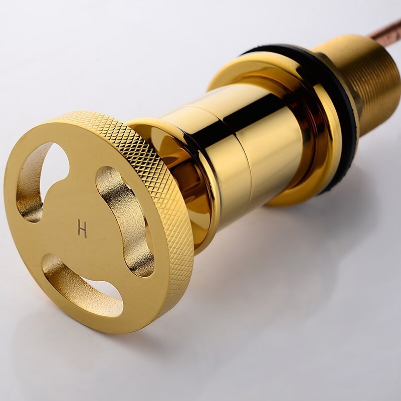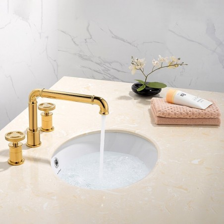 Golden Black Bathroom Tap Counter Mount 2 Handle Widespread Bathroom Basin Sink Tap 360 Rotation Spout