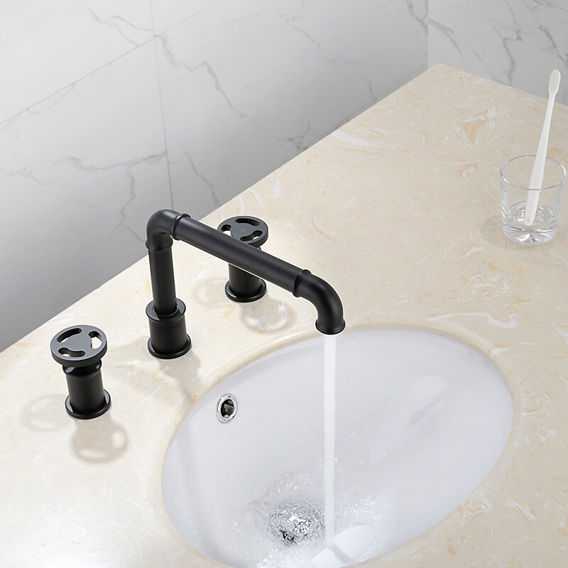 Type: Bathroom Sink Faucet+ Accessories, Style: Contemporary, Features: Classic, Rotatable, Widespread, Faucet Type: Bathroom Sink Faucet, Installation Type: Widespread, Number Of Handles: Two Handles, Cold and Hot Switch: Yes, Valve Type: Ceramic Valve, Finish: Painted Finishes, Installation Holes and Handles: Two Handles One Hole,