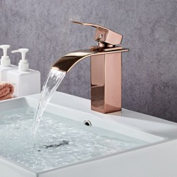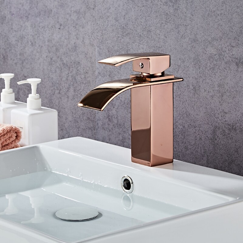 Features: Waterfall, Faucet Type: Bathroom Sink Faucet, Installation Type: Centerset, Number Of Handles: Single Handle, Cold and Hot Switch: Yes, Valve Type: Ceramic Valve, Finish: Rose Gold, Special selected products: COD, Installation Holes and Handles: Single Handle One Hole,