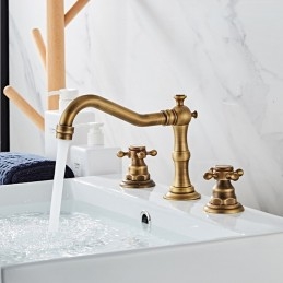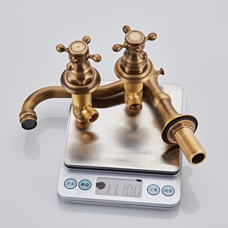 Features: Widespread, Installation Type: Roman Tub, Number Of Handles: Two Handles, Cold and Hot Switch: Yes, Valve Type: Ceramic Valve, Finish: Antique Brass, Installation Holes and Handles: Two Handles Three Holes,