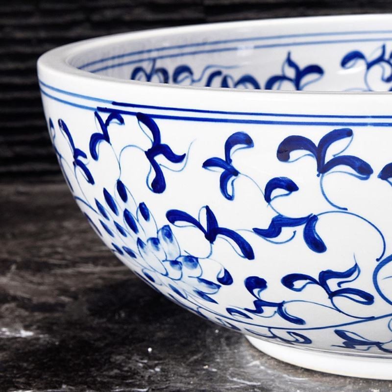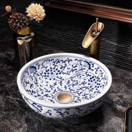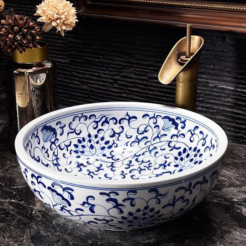 Blue and White Porcelain Countertop Washbasin Bathroom Sink