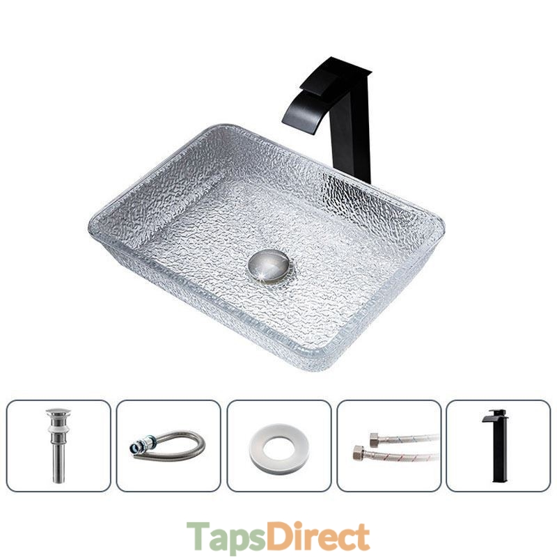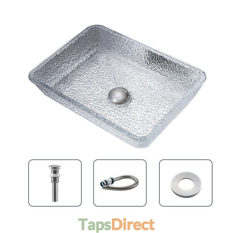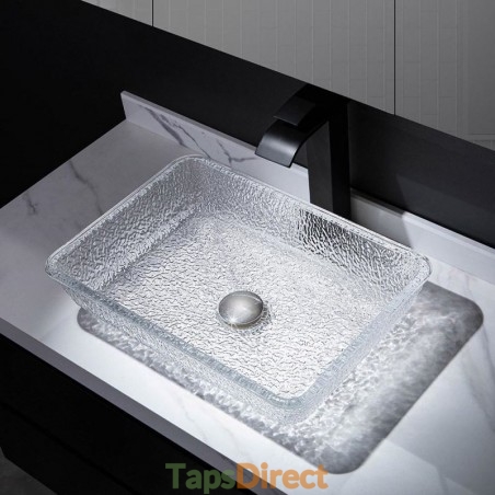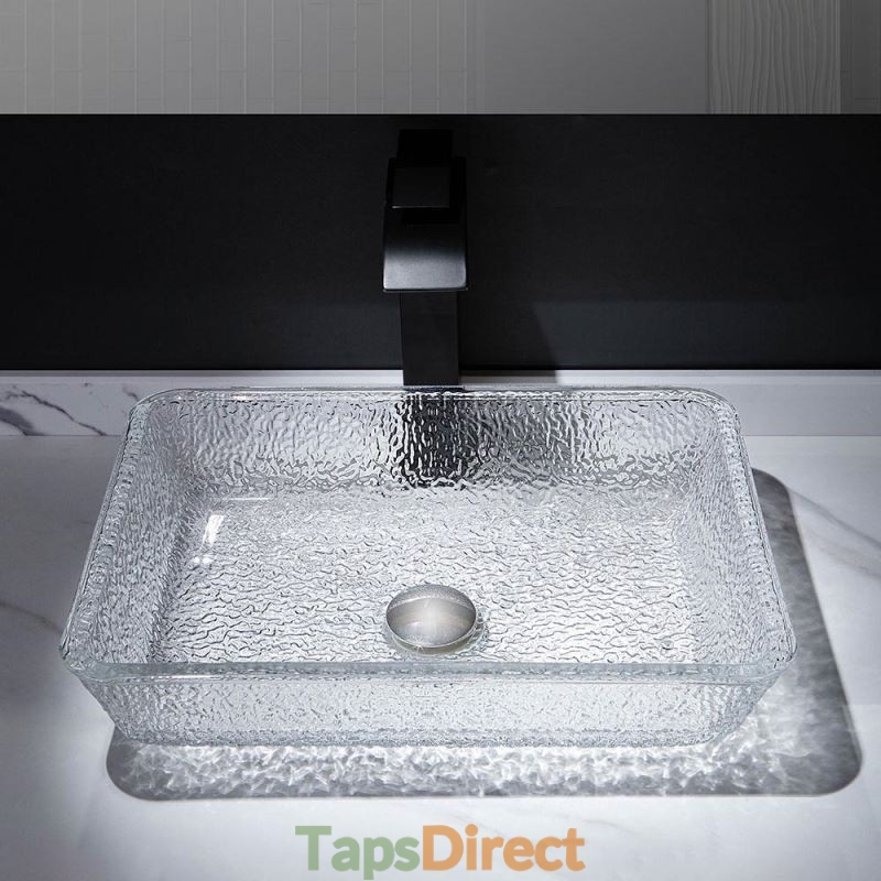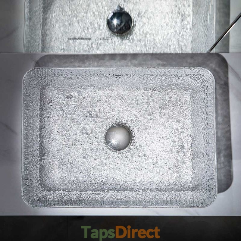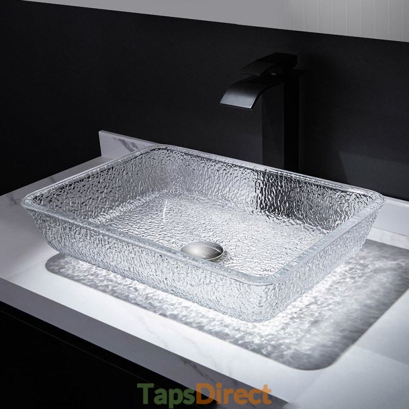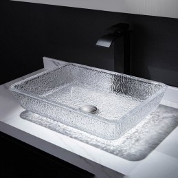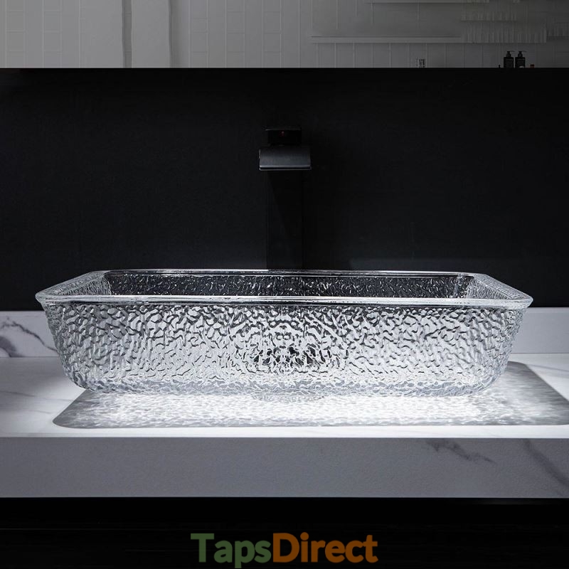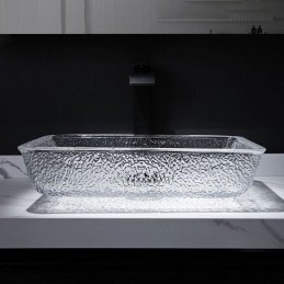 Art Countertop Rectangular Crystal Glass Washbasin for Bathroom