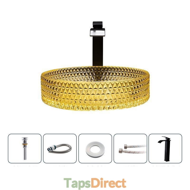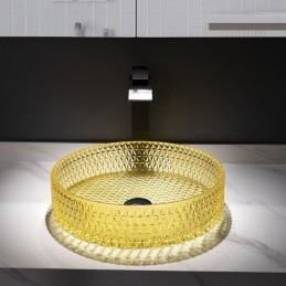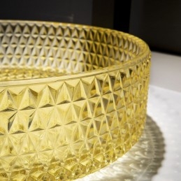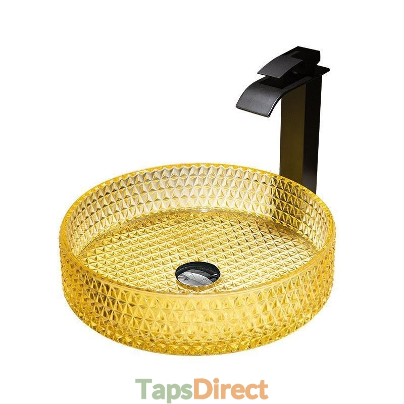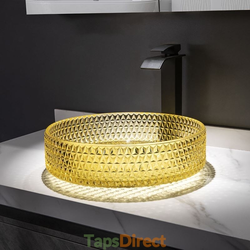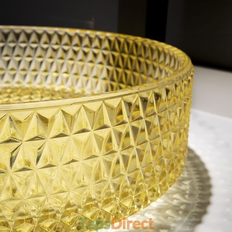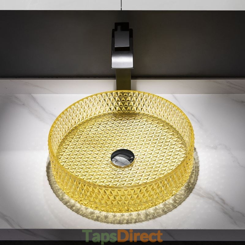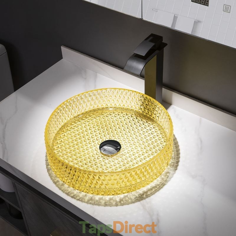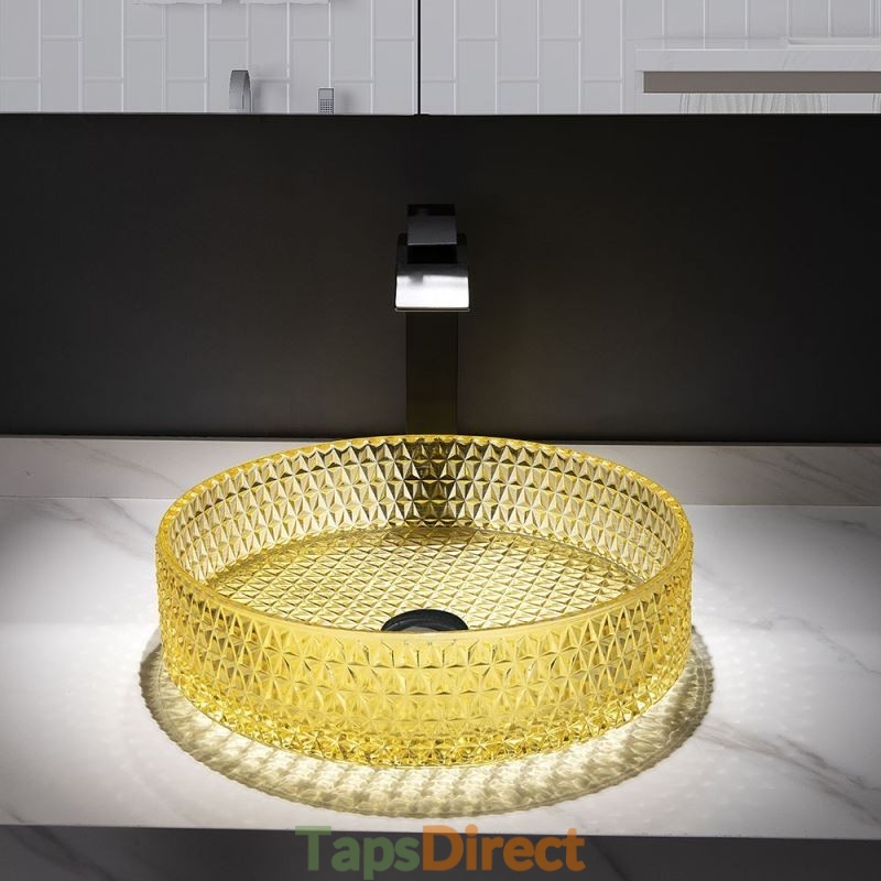 Yellow Glass Circular Wash Basin for Bathroom Vanity Countertop Round Bowl