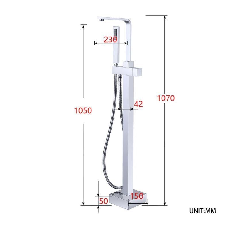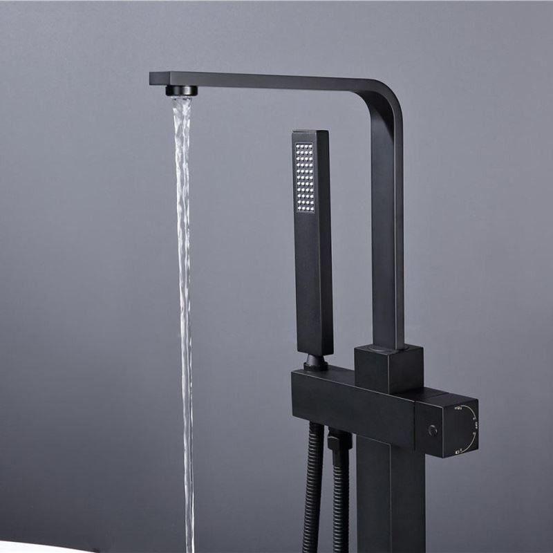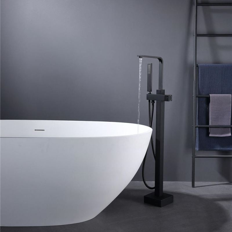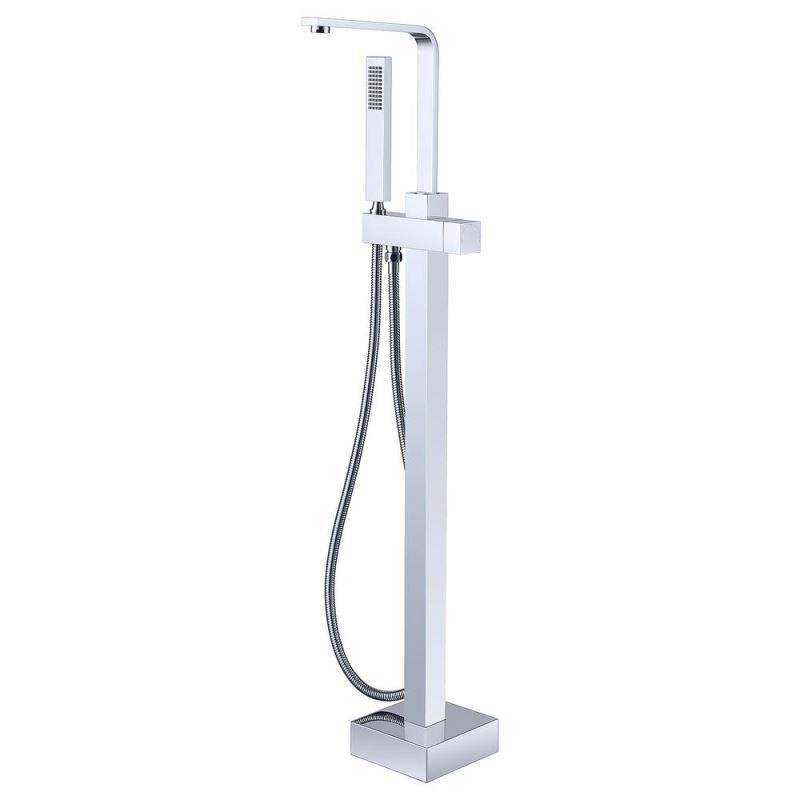 Floor Mount Brass Freestanding Bathtub Filler Tap with Hand Shower