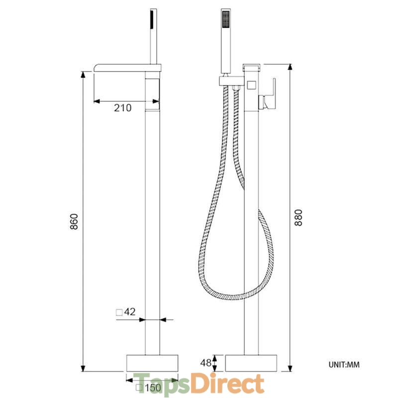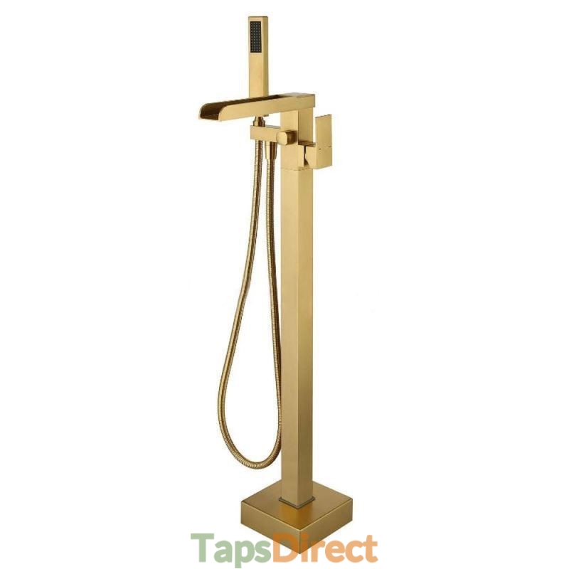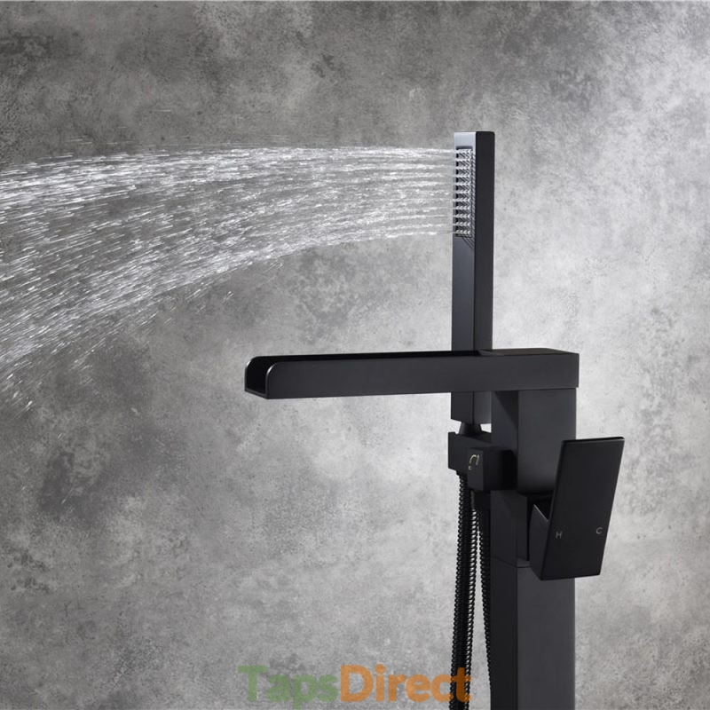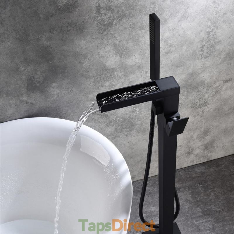 Freestanding Waterfall Floor Mounted Bath Tub Filler Tap with High Flow