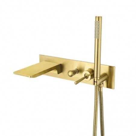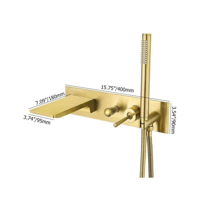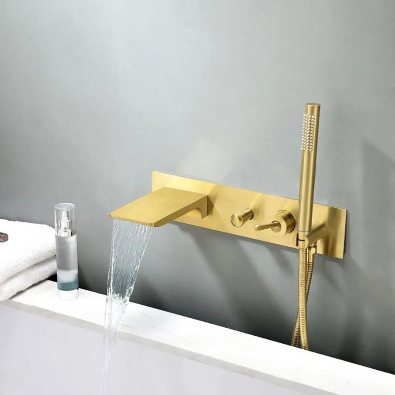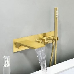 Wall Mounted Waterfall Bath Shower System Brushed Gold Bathtub Mixer Tap