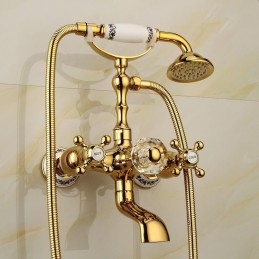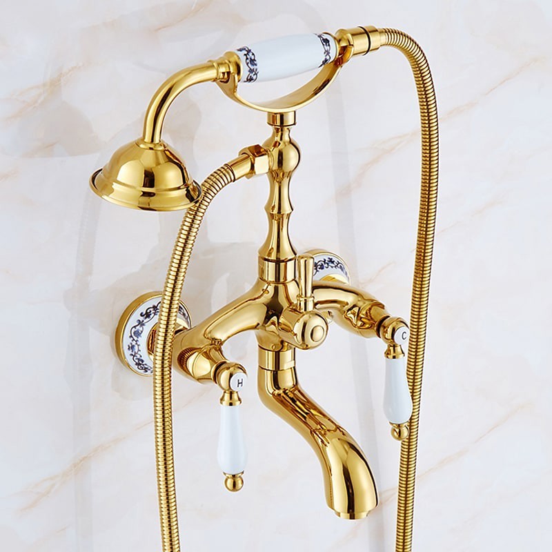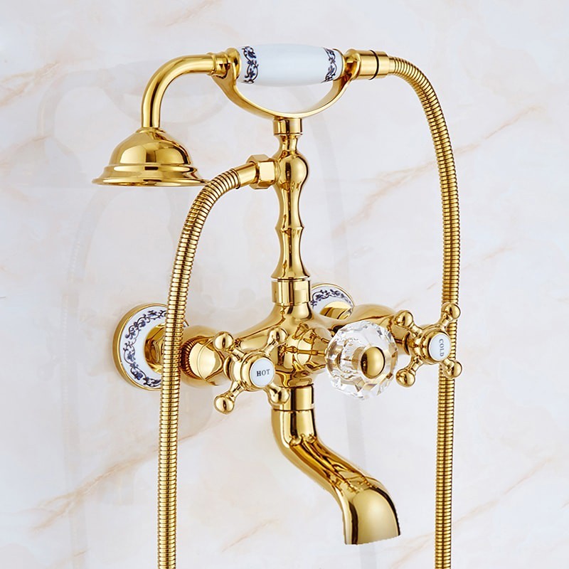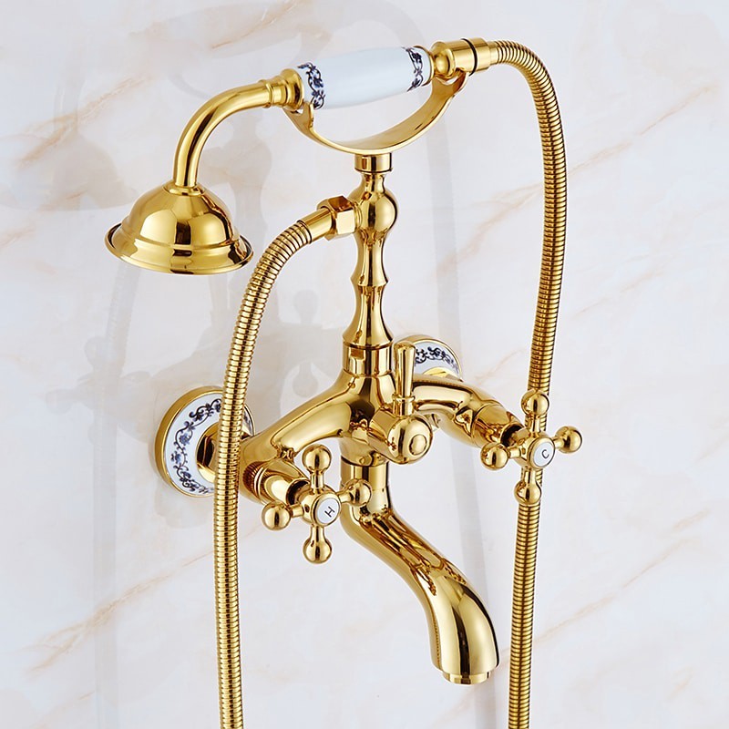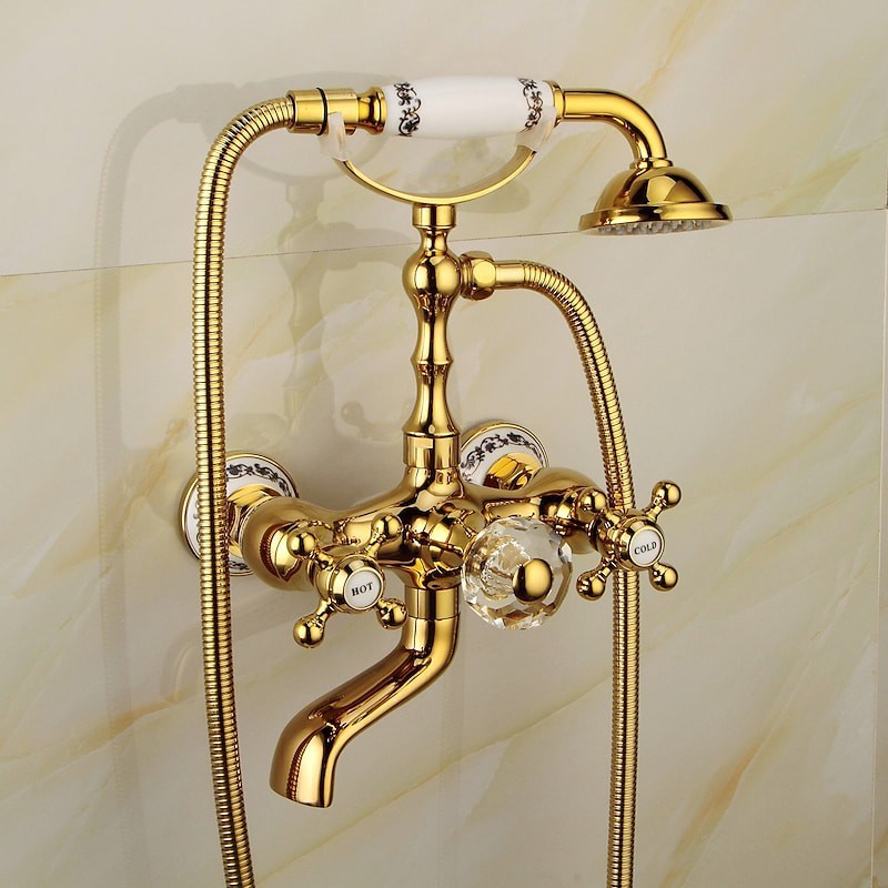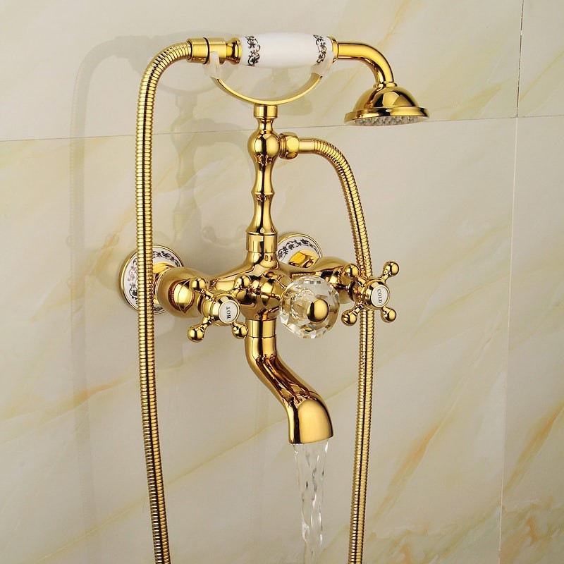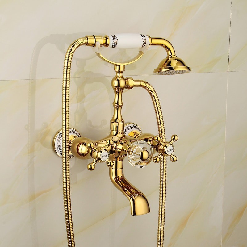 Style: Retro, Contemporary, Features: Handshower Included, Faucet Type: Bathtub Faucet, Installation Type: Wall Installation, Cold and Hot Switch: Yes, Valve Type: Ceramic Valve, Finish: Electroplated,