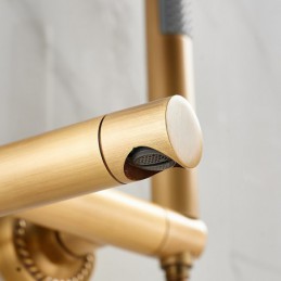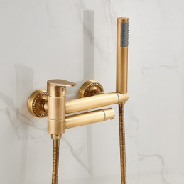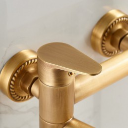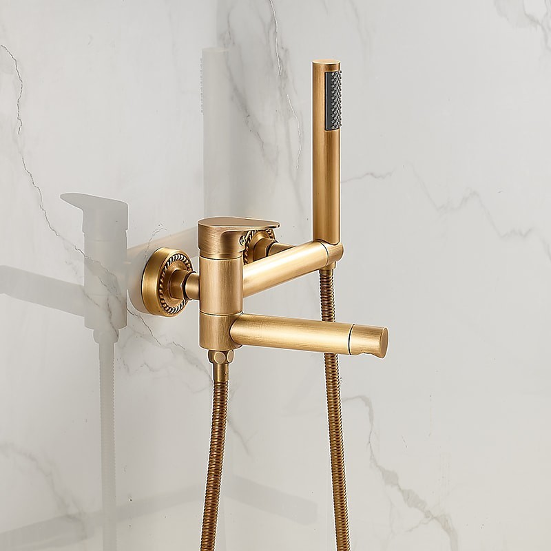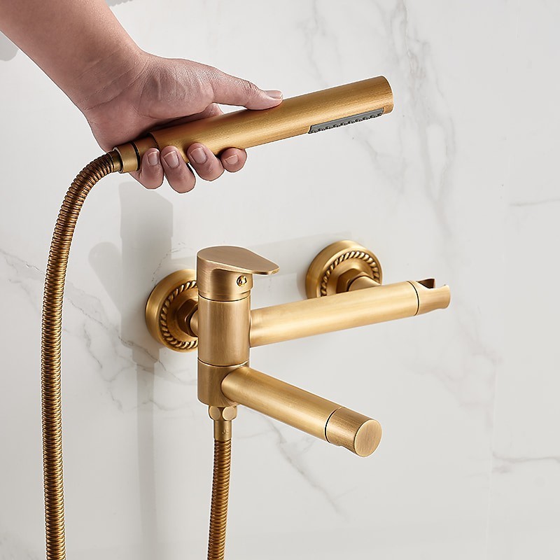 Style: Retro Vintage, Features: Handshower Included, Pull out, Faucet Type: Bathtub Faucet, Installation Type: Wall Installation, Number Of Handles: Single Handle, Cold and Hot Switch: Yes, Valve Type: Ceramic Valve, Finish: Antique Brass, Installation Holes and Handles: Single Handle Two Holes,