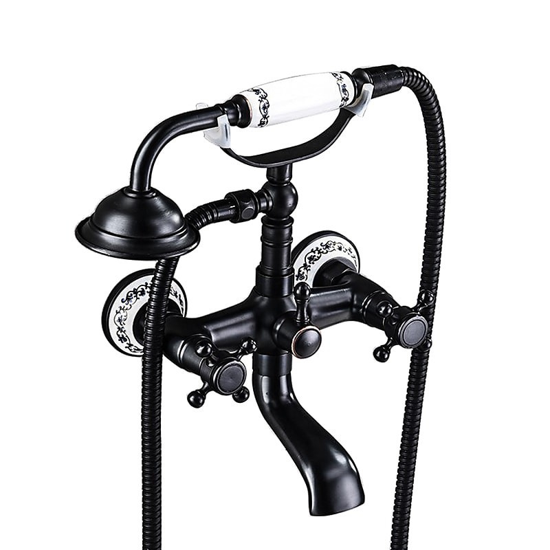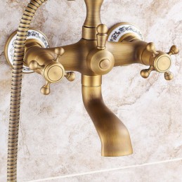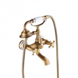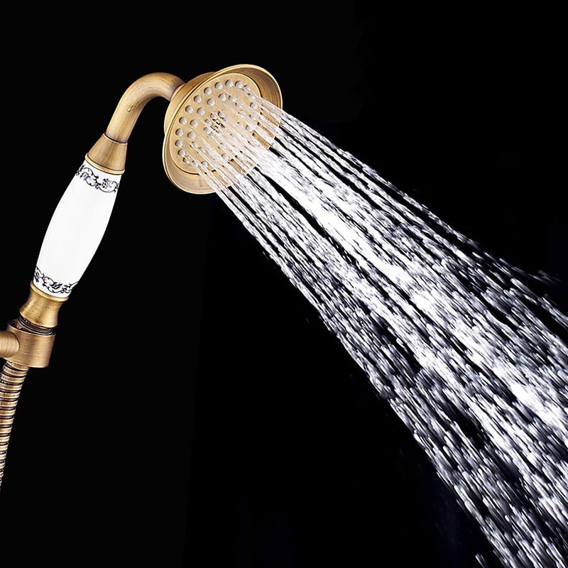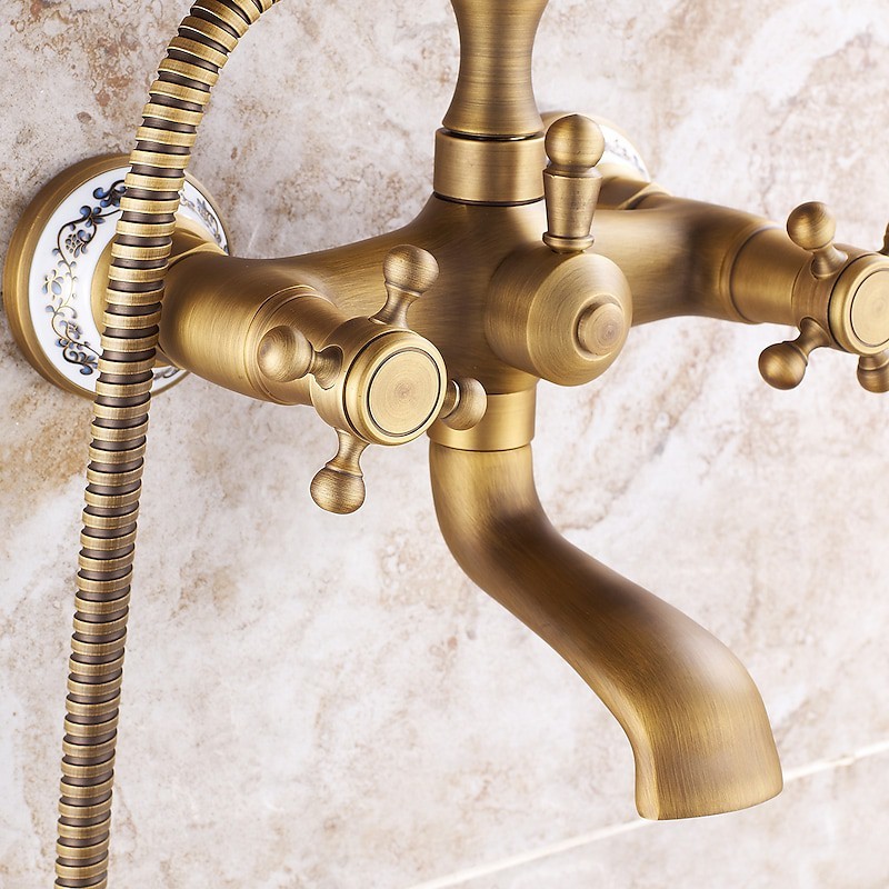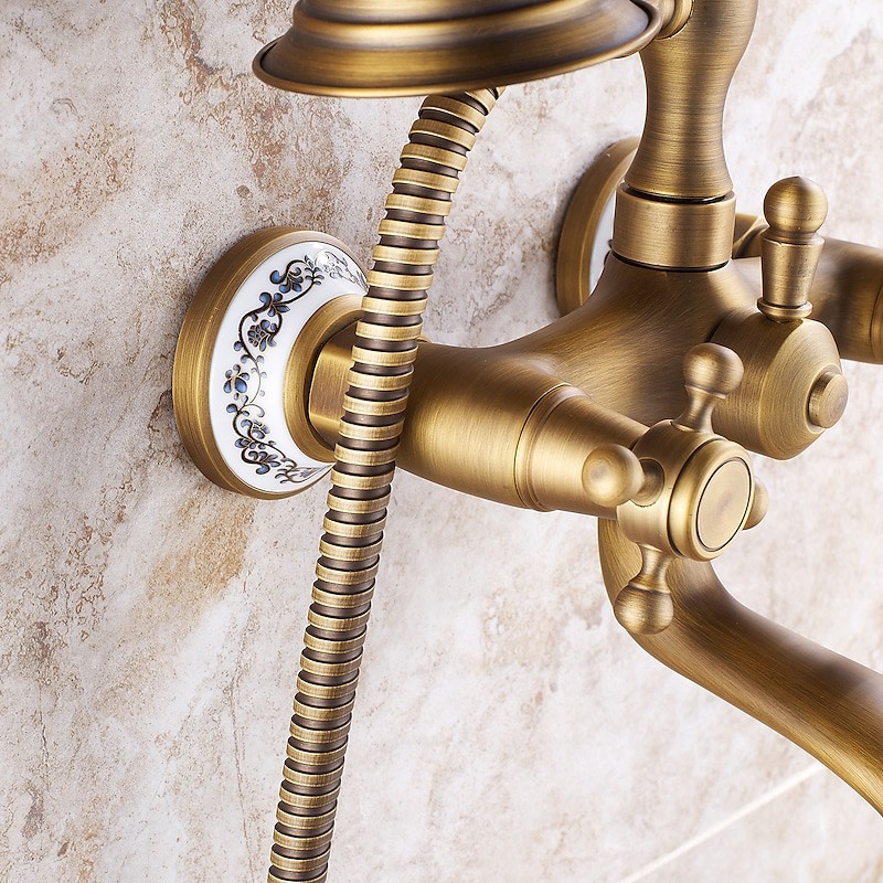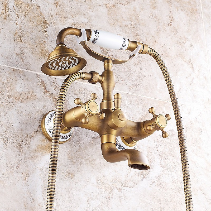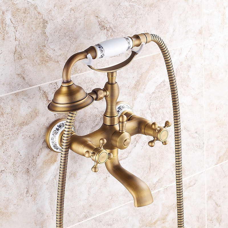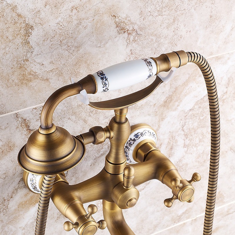 Style: Country, Retro, Features: Handshower Included, Pull out, Widespread, Faucet Type: Bathtub Faucet, Installation Type: Wall Installation, Number Of Handles: Two Handles, Cold and Hot Switch: Yes, Valve Type: Ceramic Valve, Finish: Antique Brass, Electroplated, Special selected products: COD,