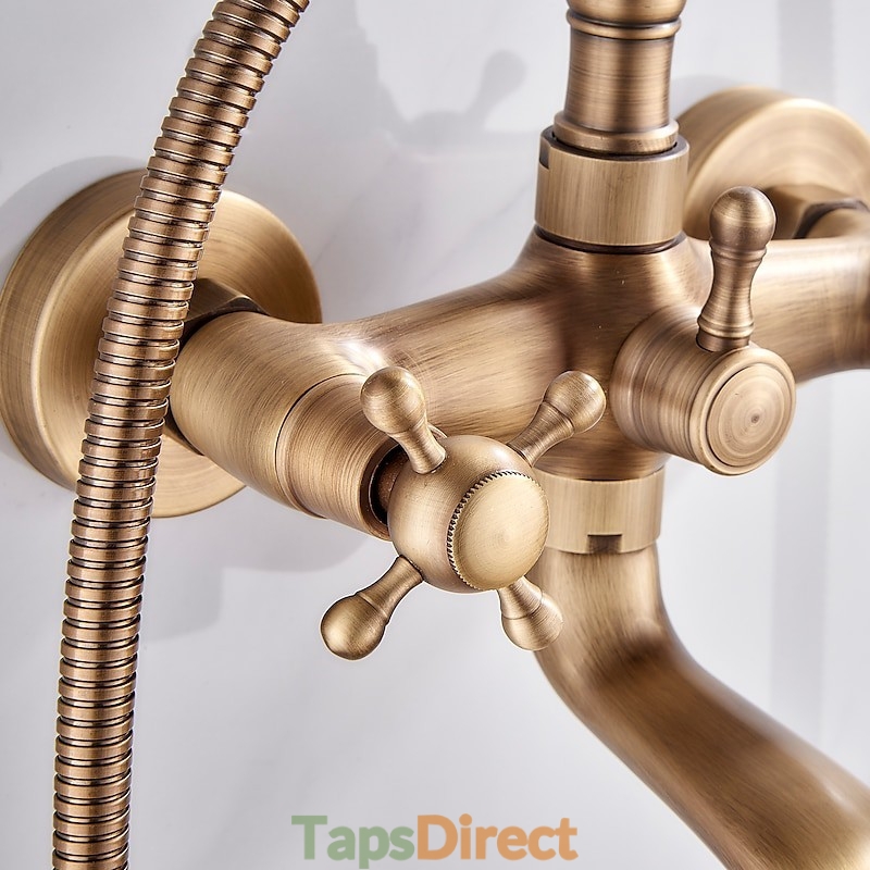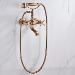 Wall Mounted Brass Rainfall Shower Mixer Tap Contain Hand Shower and Cold Hot Water Bathtub Tap