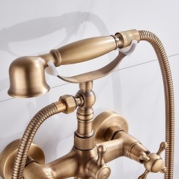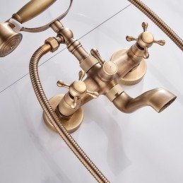 Features: Handshower Included, Faucet Type: Bathtub Faucet, Installation Type: Wall Mounted, Number Of Handles: Two Handles, Cold and Hot Switch: Yes, Valve Type: Ceramic Valve, Installation Holes and Handles: Two Handles Two Holes, Suitable Rooms: Bathroom,
