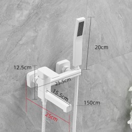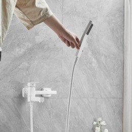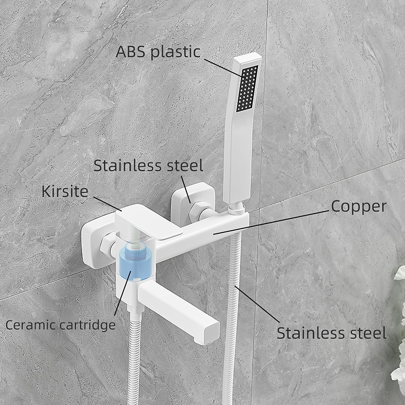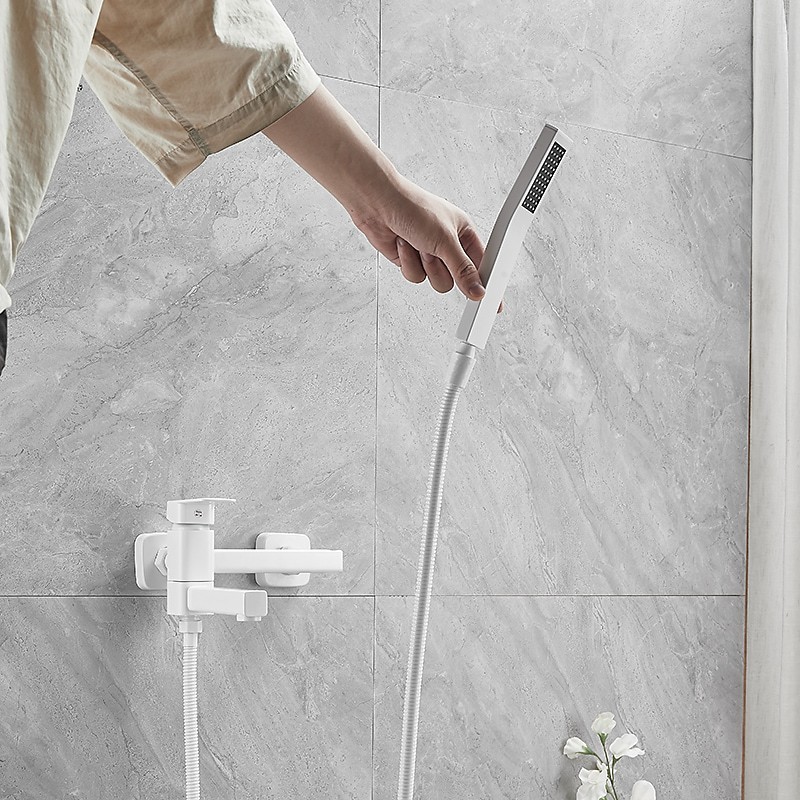 Style: Minimalist, Contemporary, Features: Pullout Spray, Pull out, Dual-Head, Handshower Included, Faucet Type: Bathtub Faucet, Installation Type: Wall Mounted, Number Of Handles: Single Handle, Cold and Hot Switch: Yes, Valve Type: Ceramic Valve, Finish: Electroplated, Painted Finishes, Installation Holes and Handles: Single Handle Two Holes, Water Pressure (Mpa): 0.5-1,