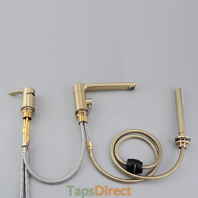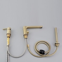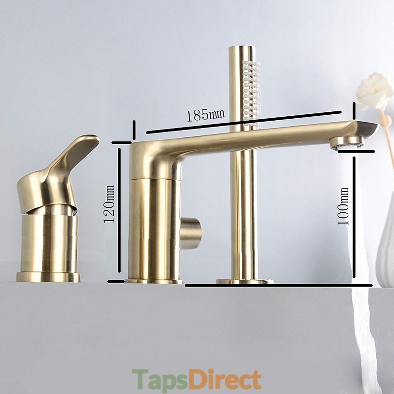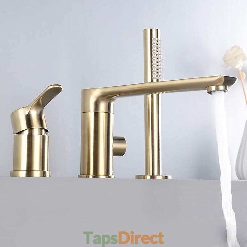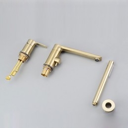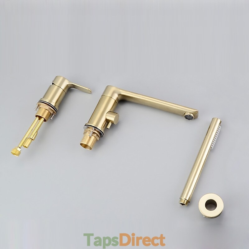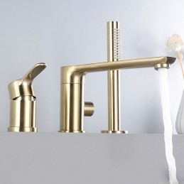 Style: Contemporary, Features: Handshower Included, Faucet Type: Bathtub Faucet, Shower Faucet, Installation Type: Roman Tub, Number Of Handles: Single Handle, Cold and Hot Switch: Yes, Valve Type: Ceramic Valve, Finish: Brushed Gold, Installation Holes and Handles: Single Handle Three Holes,