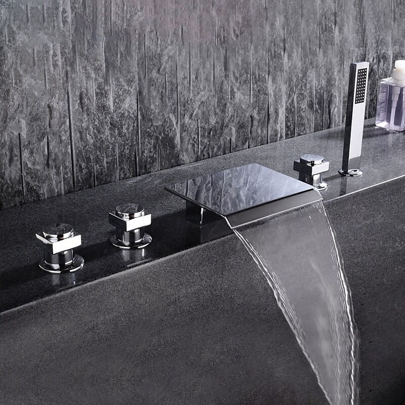 New Reference: 38867 Floor Mounted Waterfall Tub Filler with Hand Shower Set for Bathroom Freestanding Bathtub Tap Price €921.59 Add to basket More In stock
