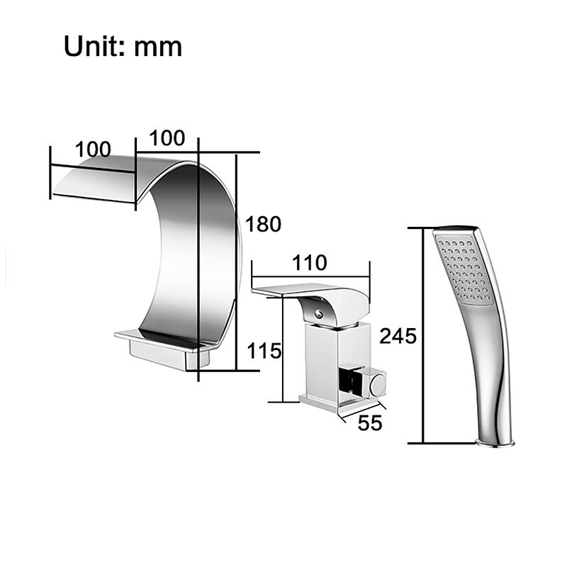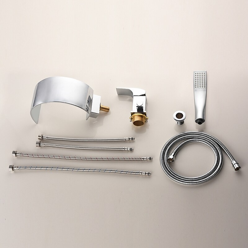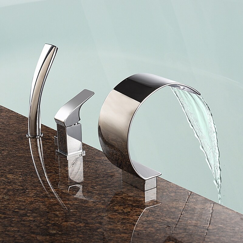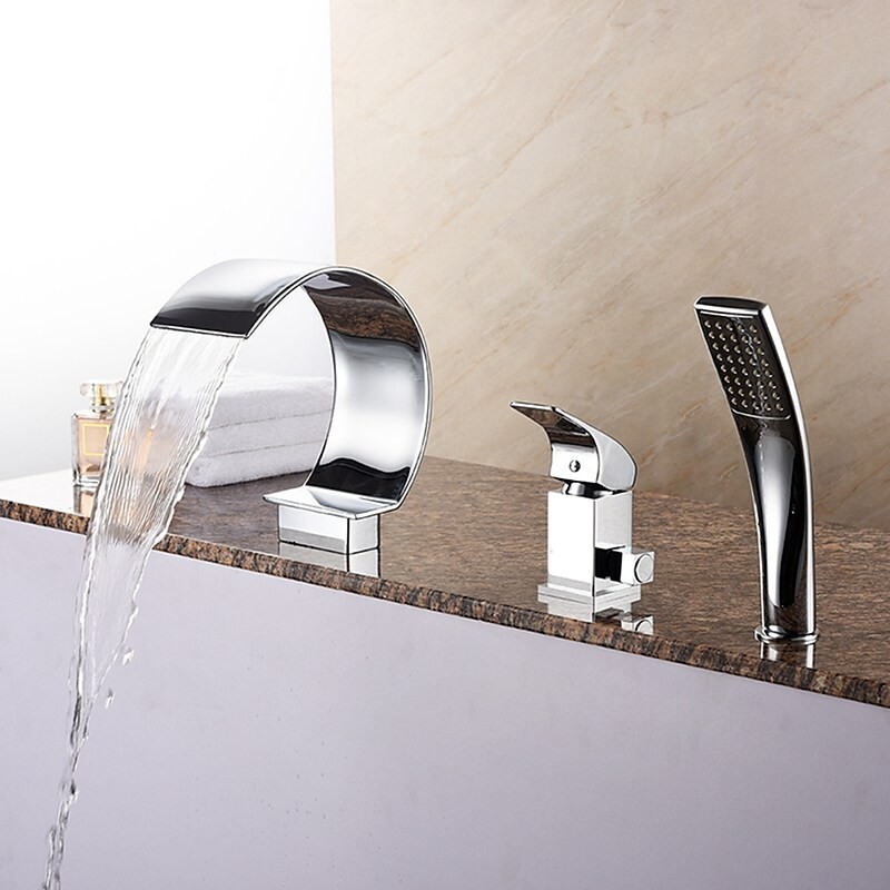 Style: Contemporary, Features: Handshower Included, Waterfall, Faucet Type: Bathtub Faucet, Installation Type: Roman Tub, Number Of Handles: Single Handle, Cold and Hot Switch: Yes, Valve Type: Ceramic Valve, Finish: Chrome, Installation Holes and Handles: Single Handle Three Holes,