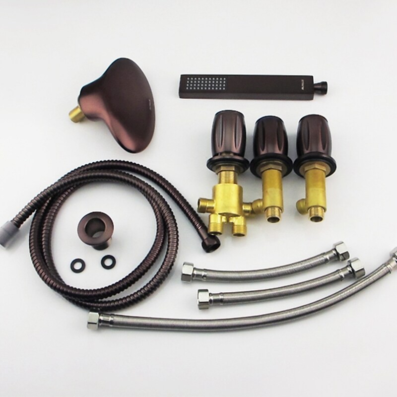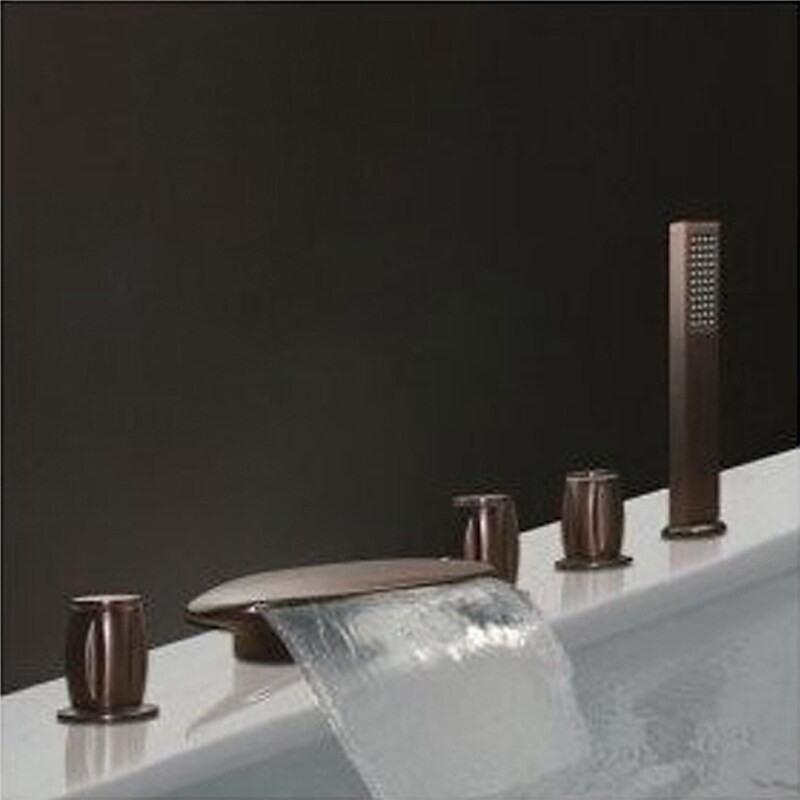 Style: Contemporary, Features: Handshower Included, Waterfall, Faucet Type: Bathtub Faucet, Installation Type: Roman Tub, Number Of Handles: Three Handles, Cold and Hot Switch: Yes, Valve Type: Brass Valve, Finish: Oil-rubbed Bronze, Installation Holes and Handles: Three Handles Five Holes,