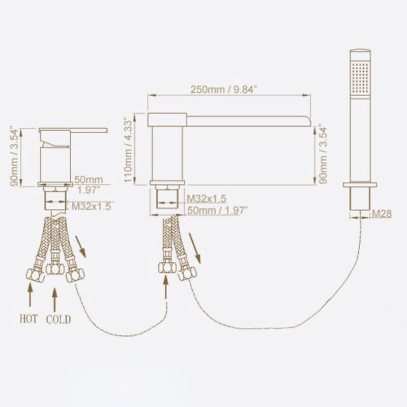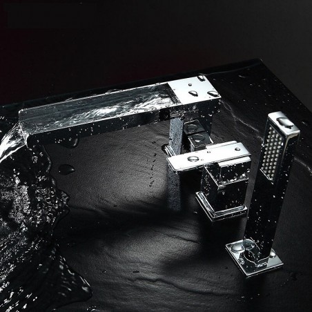 Style: Contemporary, Features: Handshower Included, Waterfall, Faucet Type: Bathtub Faucet, Installation Type: Roman Tub, Number Of Handles: Single Handle, Cold and Hot Switch: Yes, Valve Type: Ceramic Valve, Finish: Chrome, Installation Holes and Handles: Single Handle Three Holes,