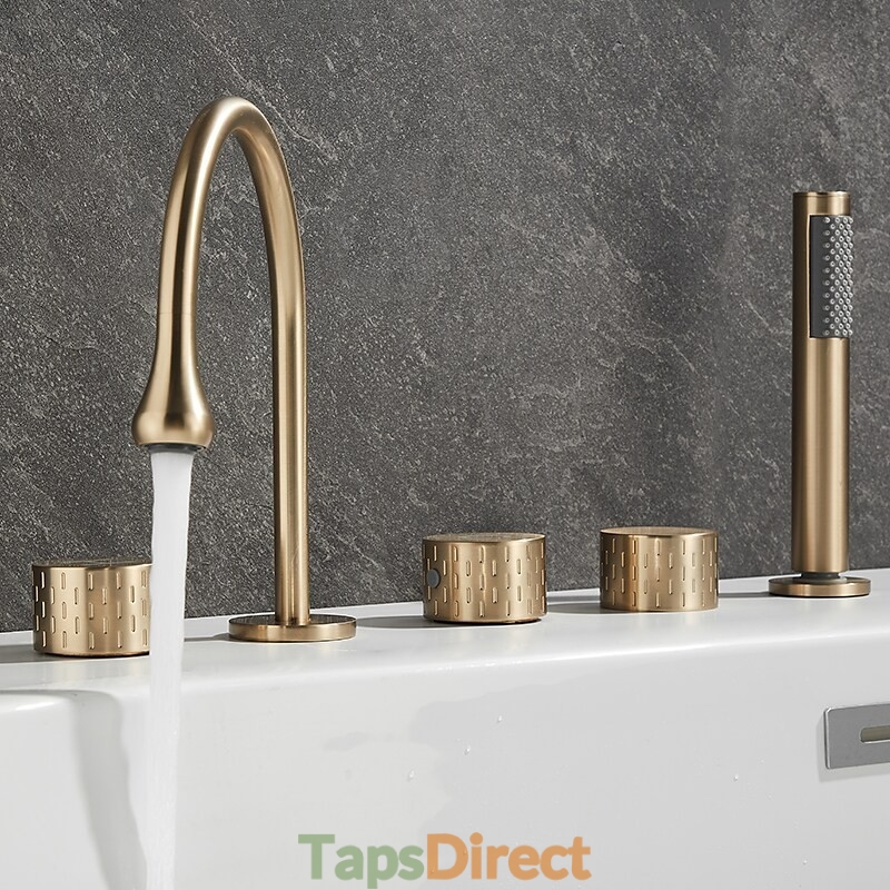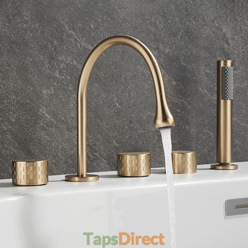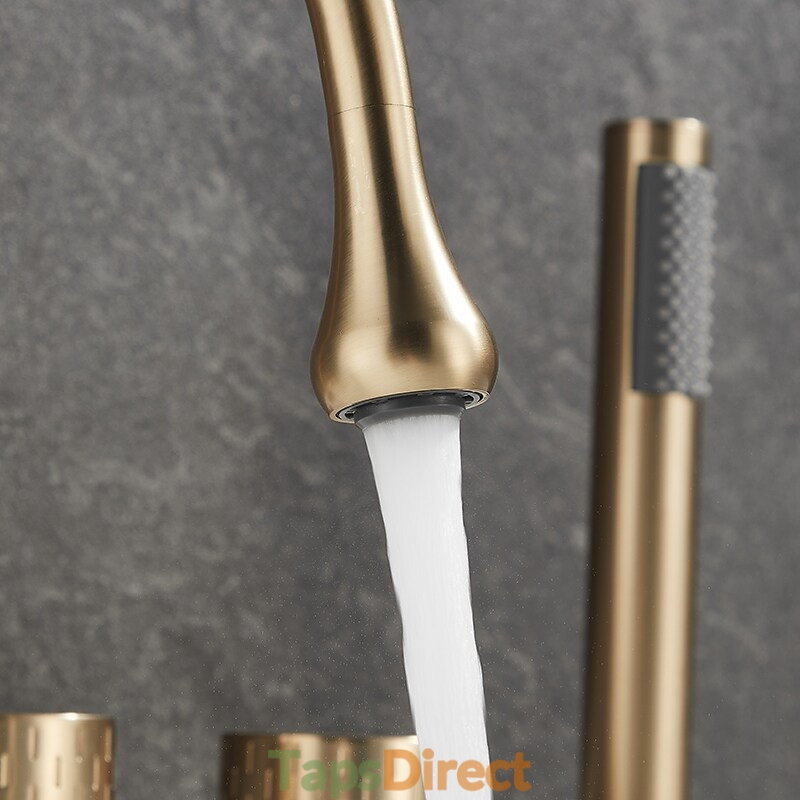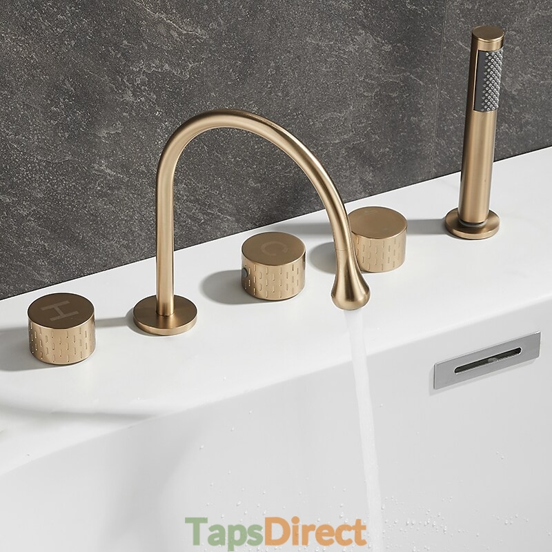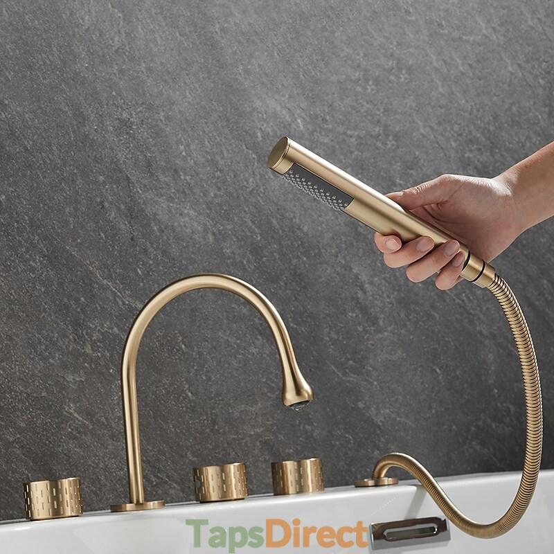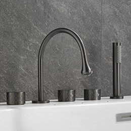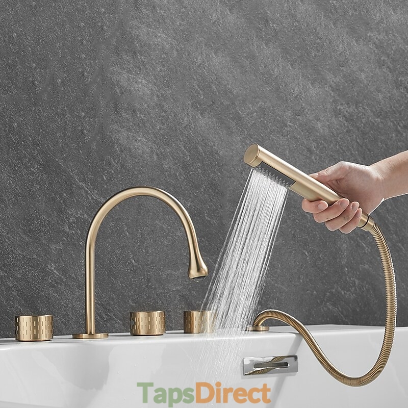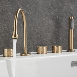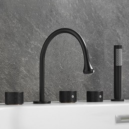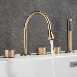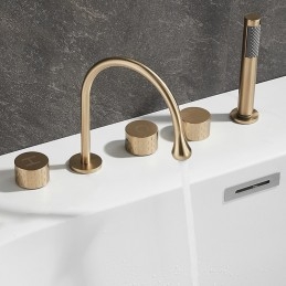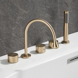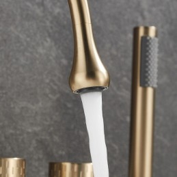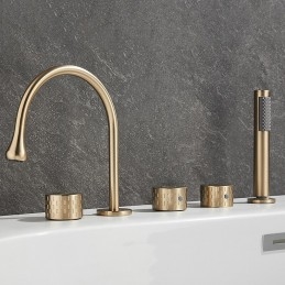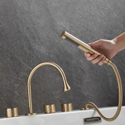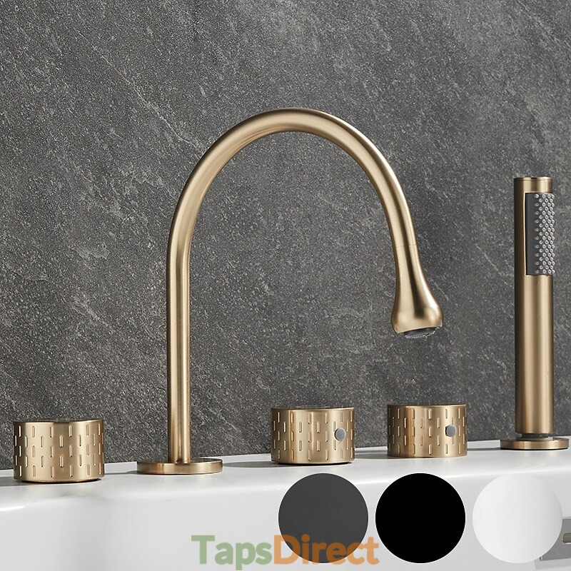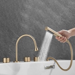 Style: Modern Contemporary, Contemporary, Features: Handshower Included, Pullout Spray, Pull out, Widespread, Faucet Type: Bathtub Faucet, Installation Type: Roman Tub, Number Of Handles: Three Handles, Cold and Hot Switch: Yes, Valve Type: Brass Valve, Finish: Painted Finishes, Electroplated, Installation Holes and Handles: Three Handles Five Holes, Water Pressure (Mpa): 0.3-1,