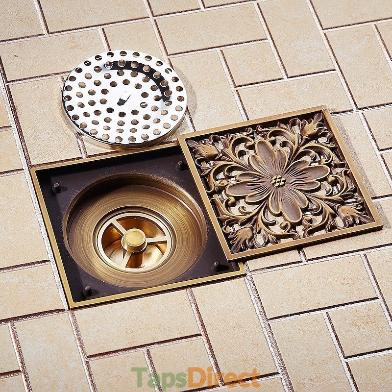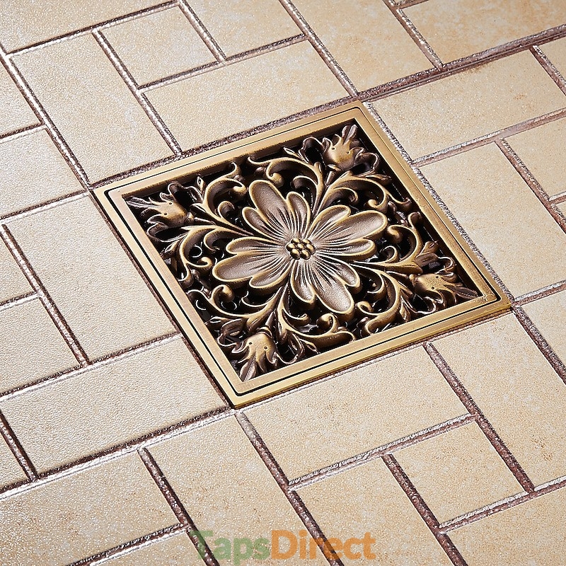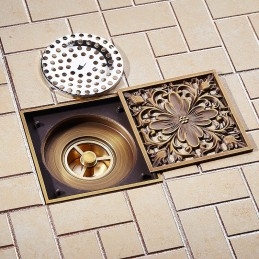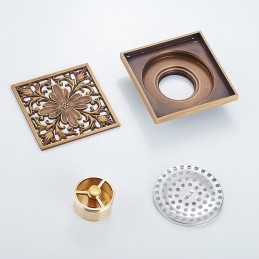 New Reference: 39357 Art Carved Flower Pattern Square Shower Sink Drain Strainer Cover Grate Drain with Removable Cover Brass Bathroom Floor Drain Price €46.07 Add to basket More In stock