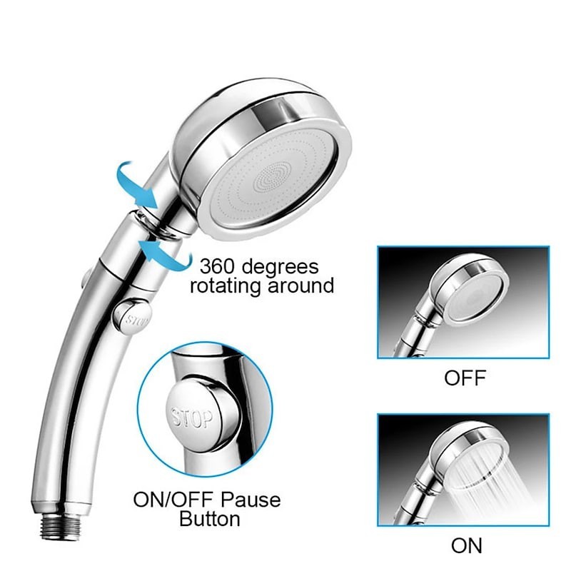 New Reference: 39490 Shower Head High Pressure 3 Function SPA Shower Head With Switch On Off Button Filter Bath Head Water Saving Shower Bathroom Price €21.59 Add to basket More In stock