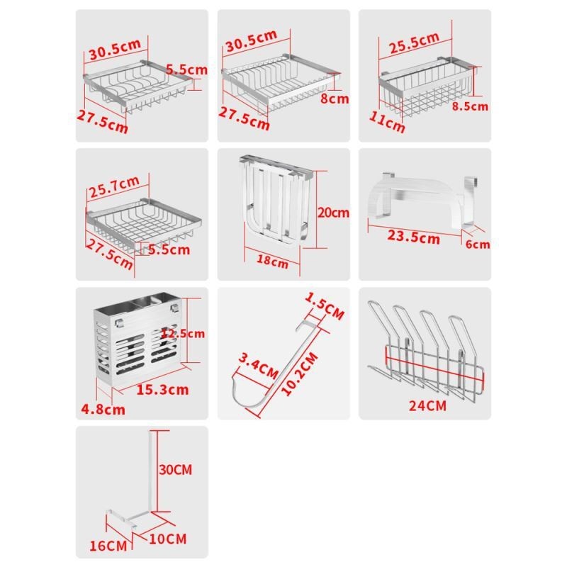 | Accessories List | Dish rack, bowl rack, knife rack, cutting board rack, detergent rack, chopstick rack, cup rack, tissue rack, 5 hooks |