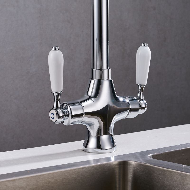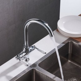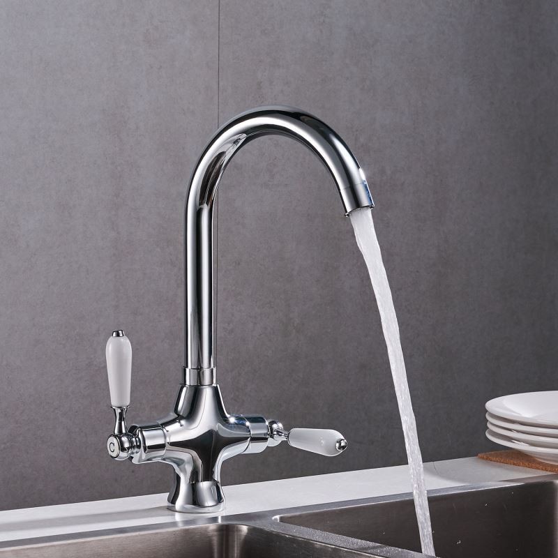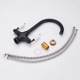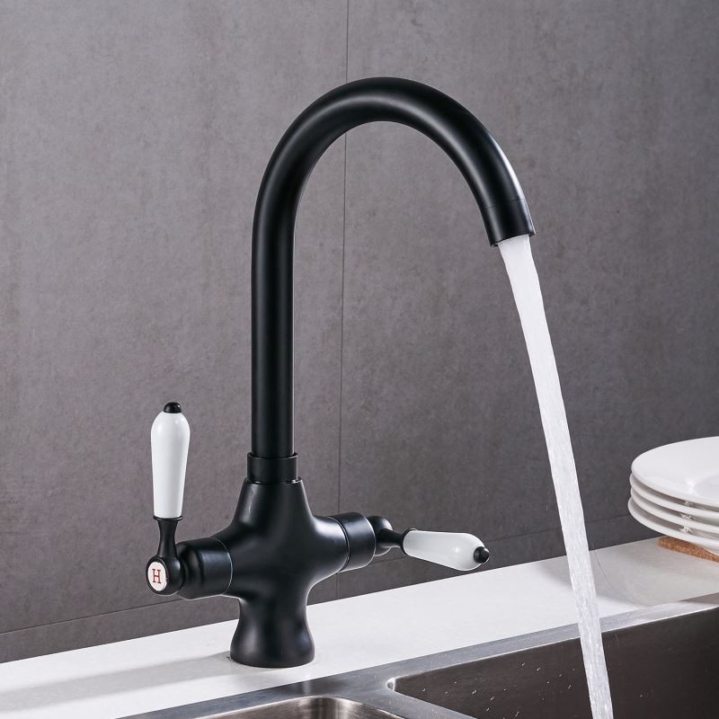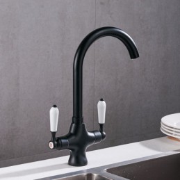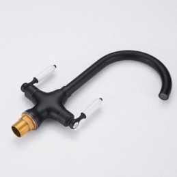 360 Degree Rotatable Dual Handle Brass Kitchen Sink Tap in Chrome Black