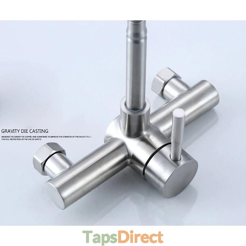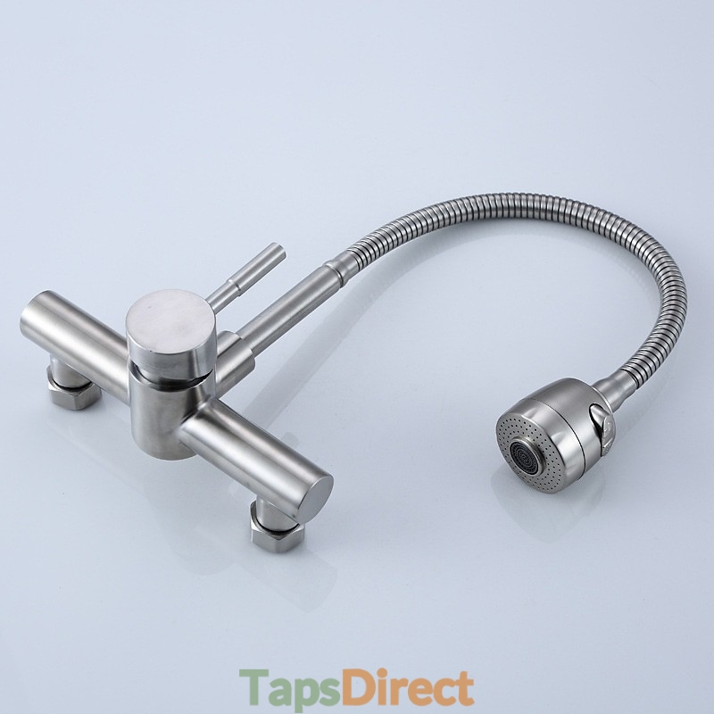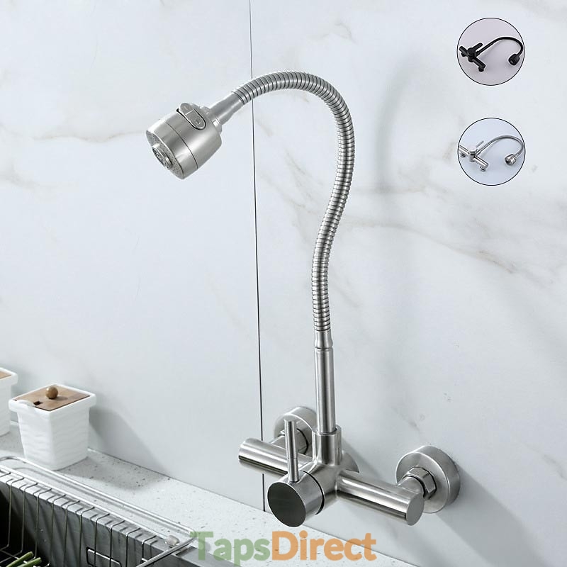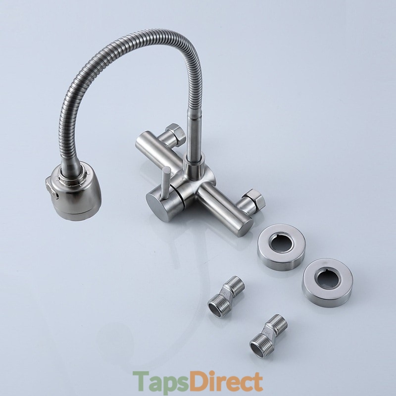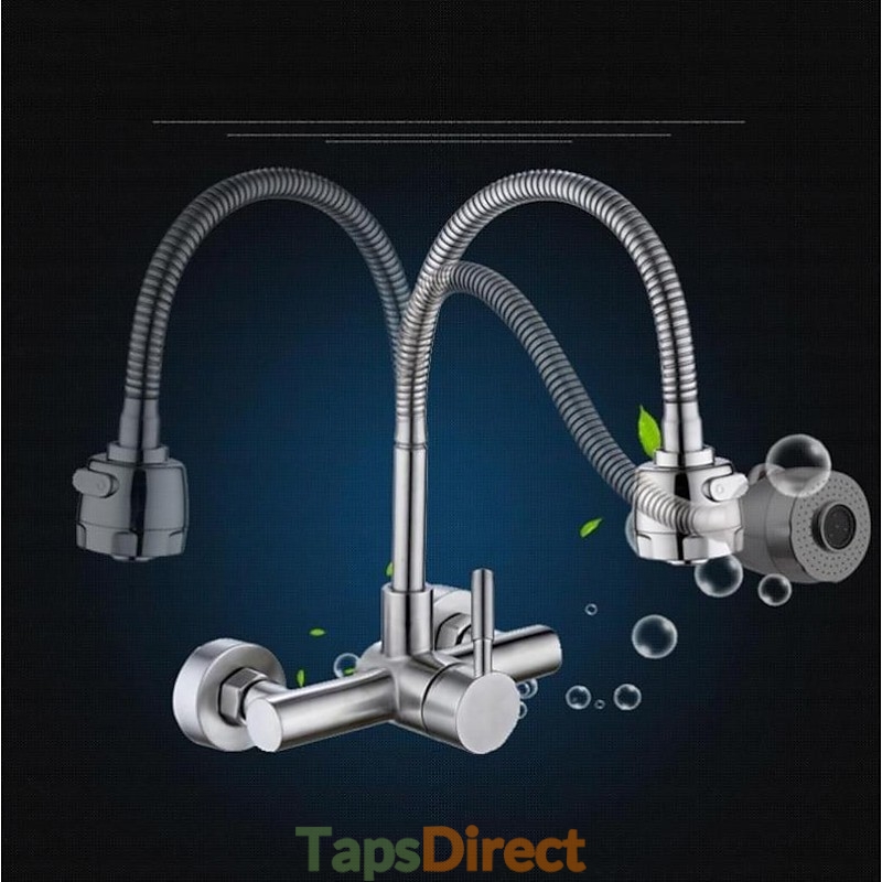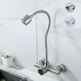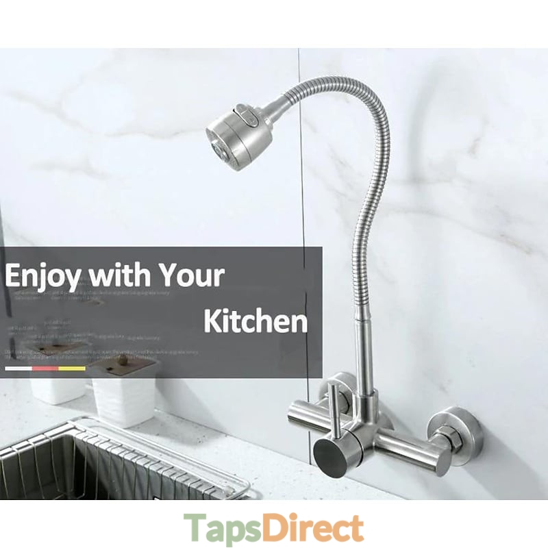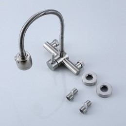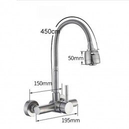 Type: Tall / High Arc, Standard Spout, Style: Contemporary, Features: Rotatable, Faucet Type: Kitchen faucet, Installation Type: Wall Mounted, Number Of Handles: Single Handle, Cold and Hot Switch: Yes, Valve Type: Ceramic Valve, Finish: Electroplated, Nickel Brushed, Special selected products: COD, Installation Holes and Handles: Single Handle Two Holes,